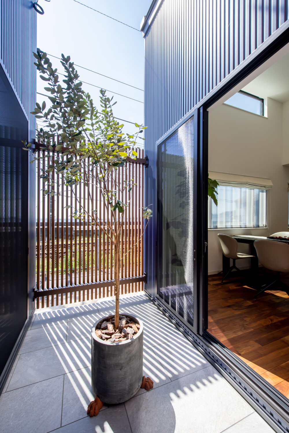 - 室内→屋外→室内へと視界を介すことで、広く見える効果も。