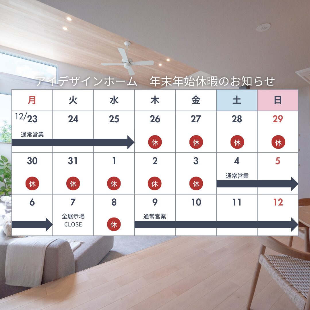 誠に勝手ながら、アイデザインホームは12月26日(木)より年末年始休業いたします。