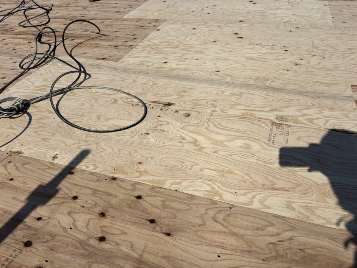 上棟当日にルーフィングを施工し雨仕舞いをします。