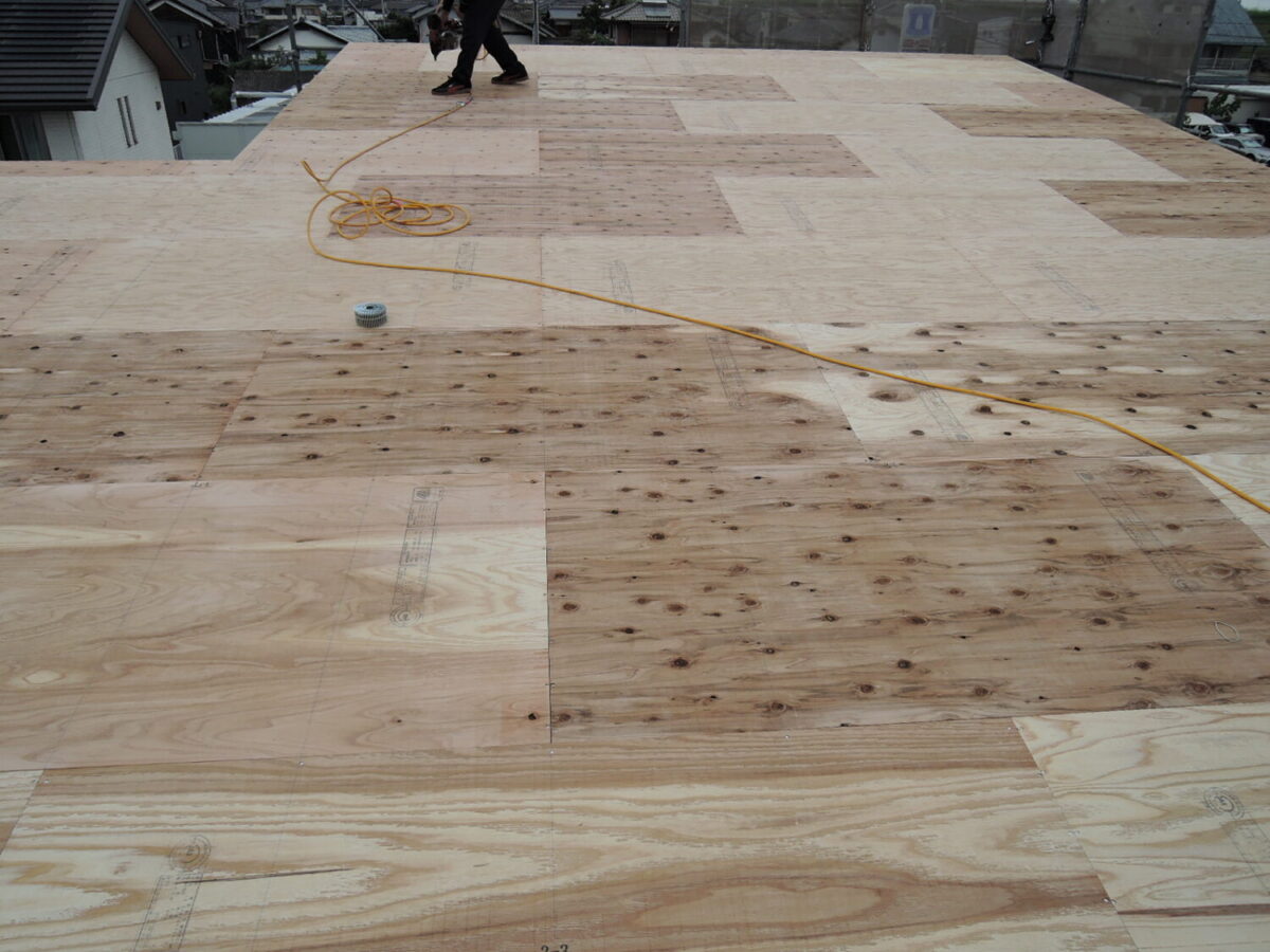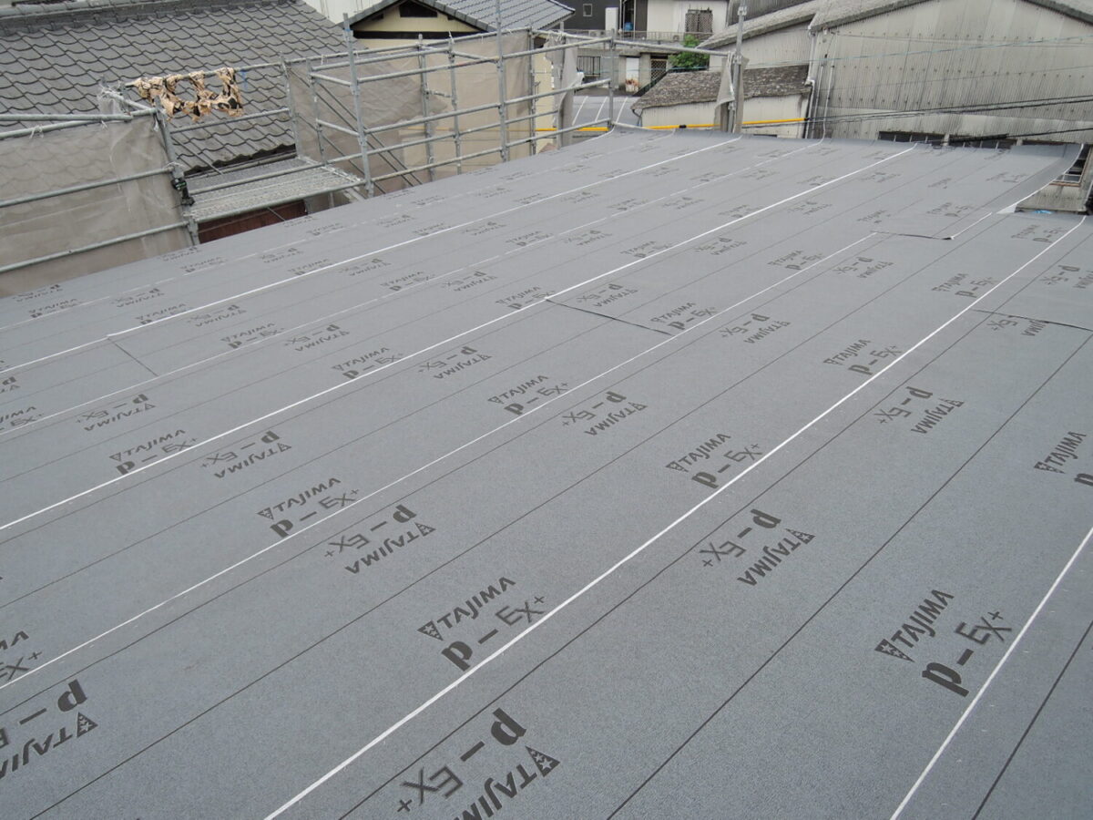 屋根板の上にアスファルトルーフィングを敷設して、