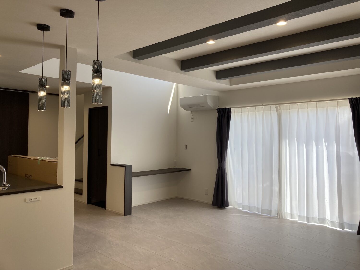 アクセントクロスと床材がマッチしていてとてもかっこいいLDKに仕上がっていました!