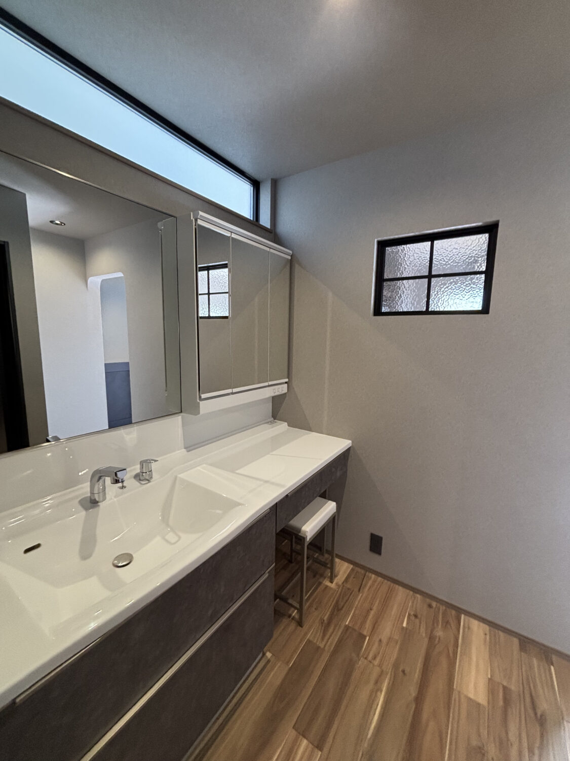 洗面台横には格子の窓を設けアクセントになっていてオシャレです🌟