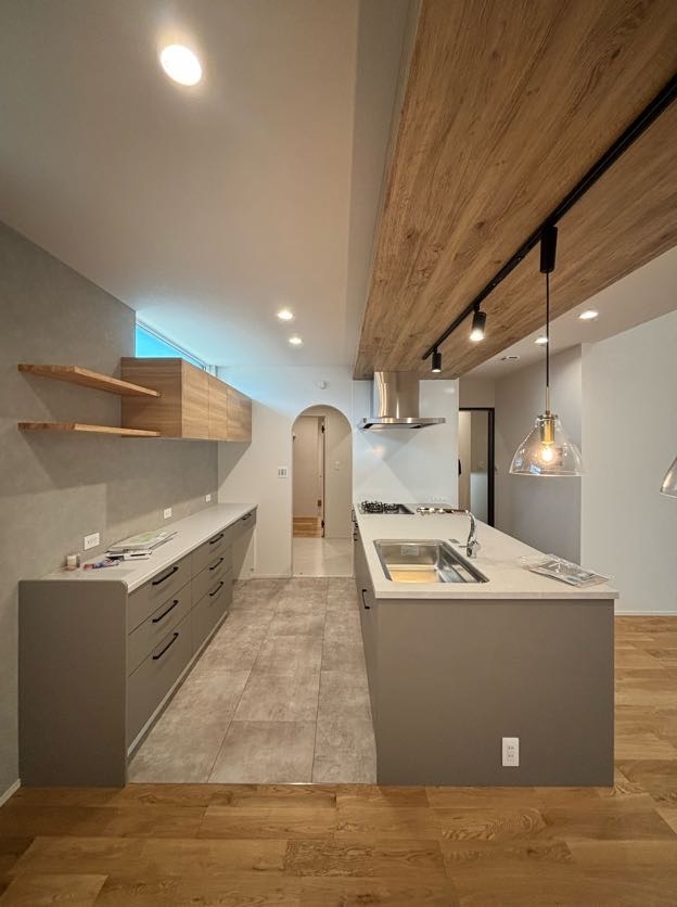 キッチンの床はフロアタイルで水や油などが飛び散っても安心です✨