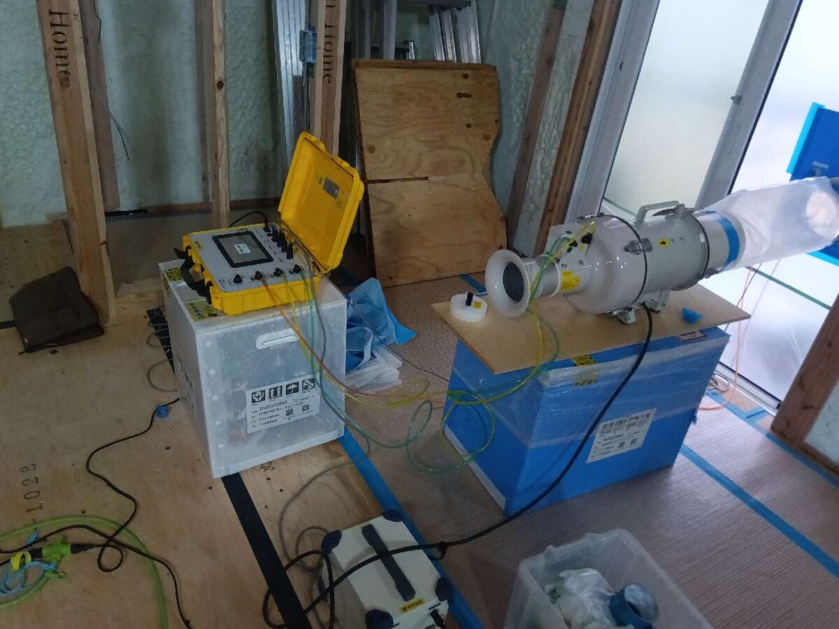 本日は 大阪府豊中市にて Y様邸の気密測定を実施させて頂きました。気密測定の様子を紹介させていただきます。