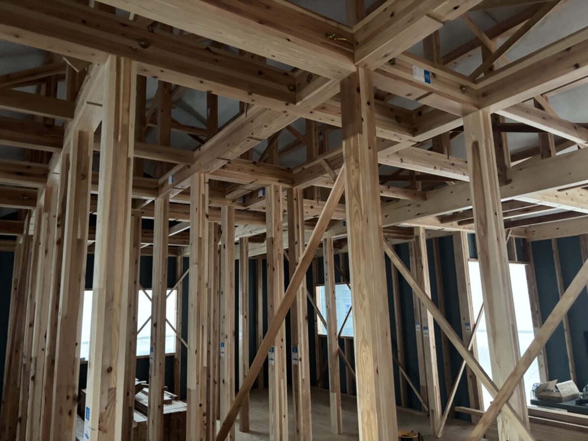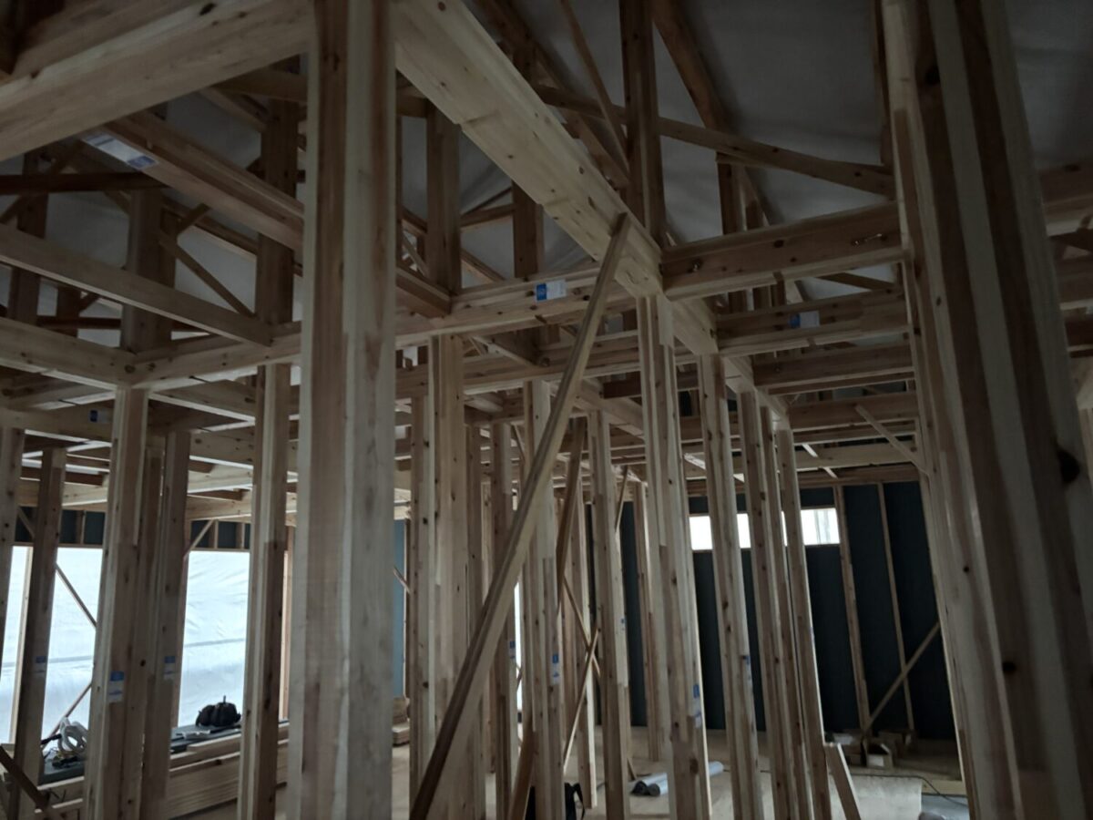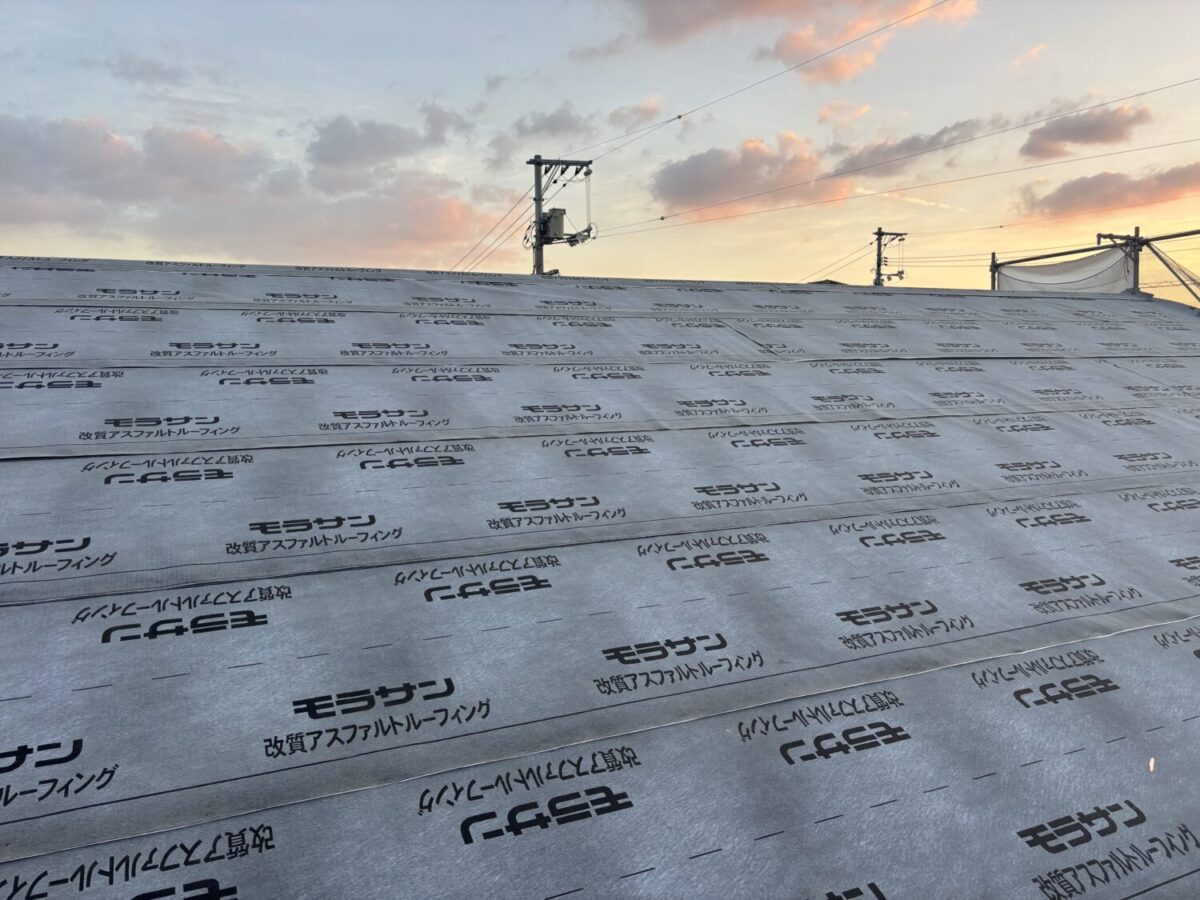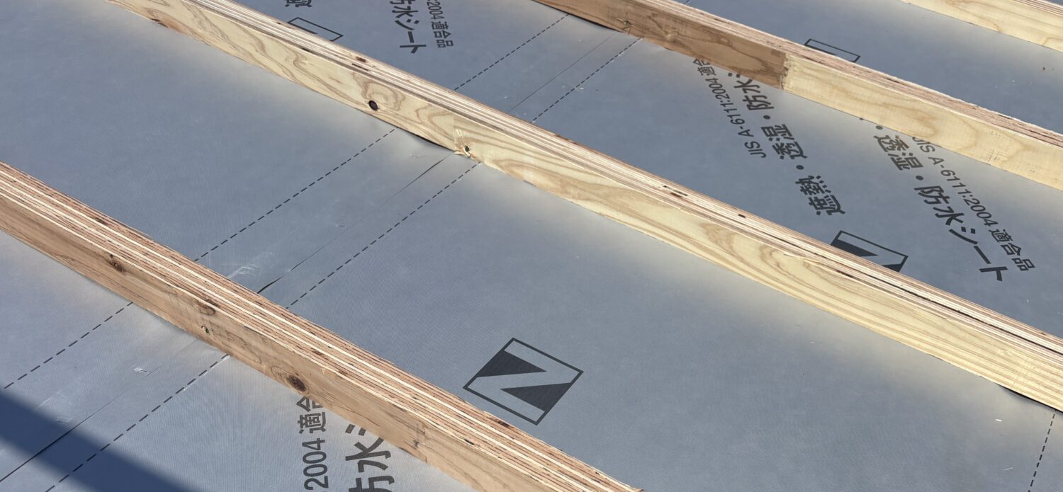 上棟当日にルーフィングを施工し雨仕舞いをします。
