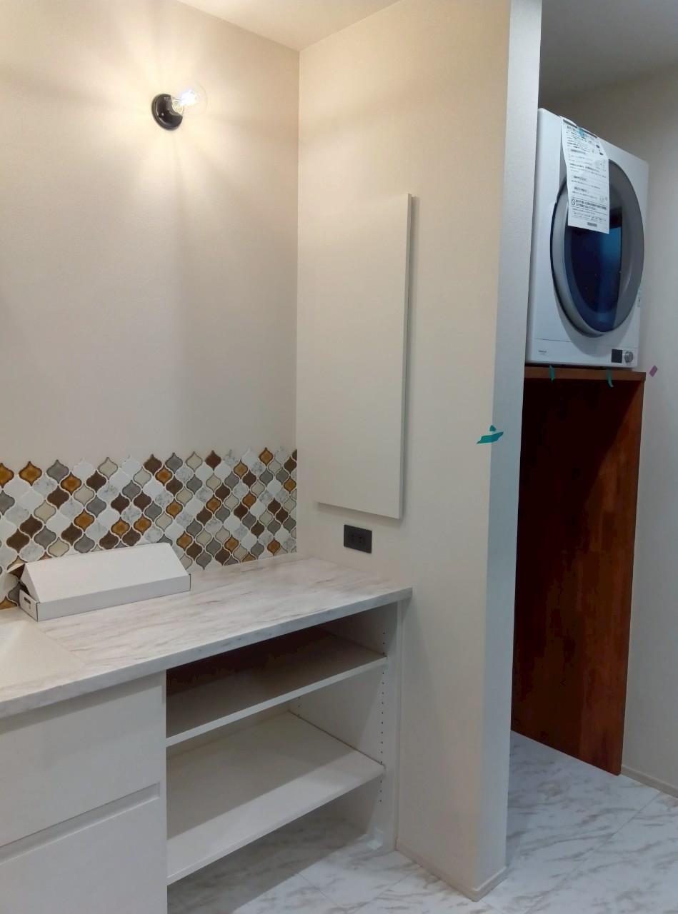 奥には今大人気の乾太くんも設置して集成材カウンターで造作の台をご採用いただきました!