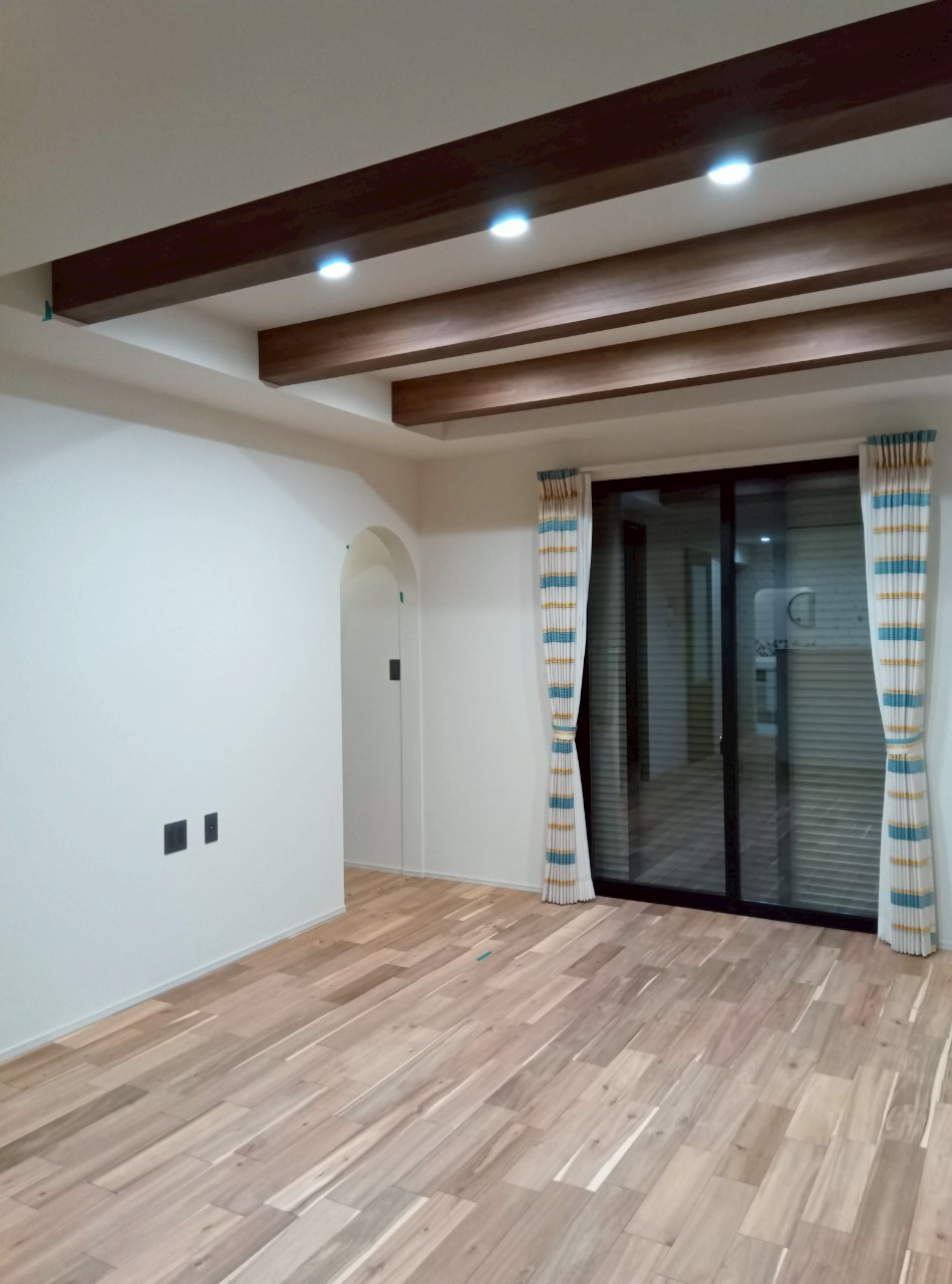 無垢のフロアーに折り上げ天井とアーチ下がり壁もご採用いただきアイデザインホームらしい仕上りになっていました!