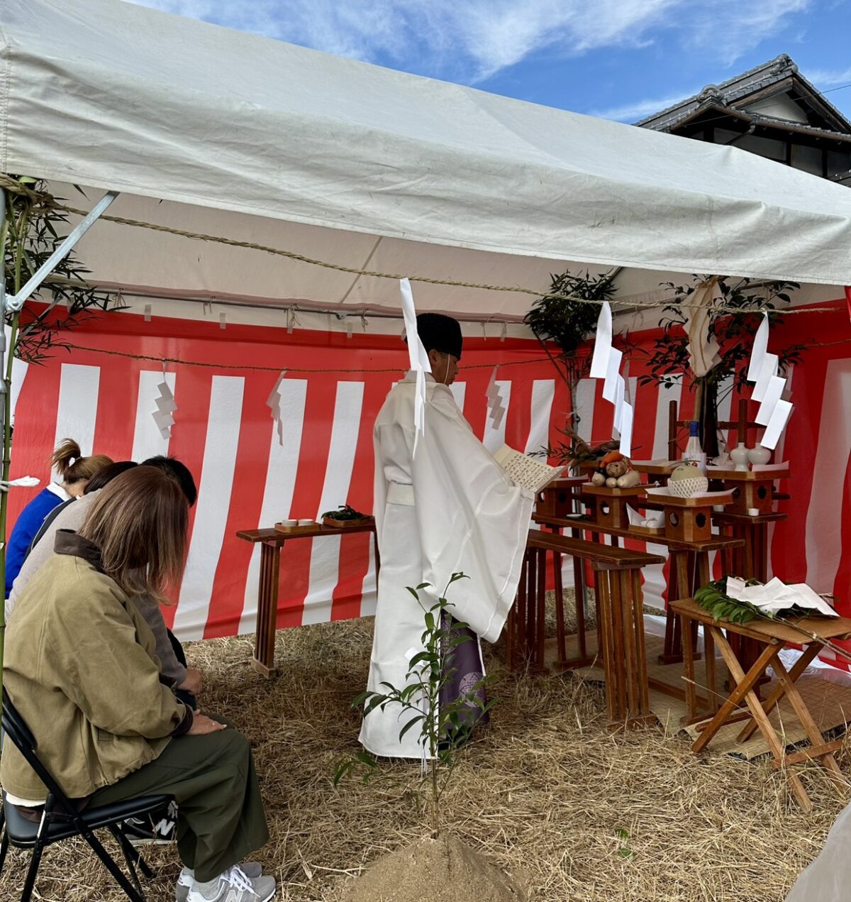 爽やかな秋晴れのもと、S様邸の地鎮祭を執り行いました。
