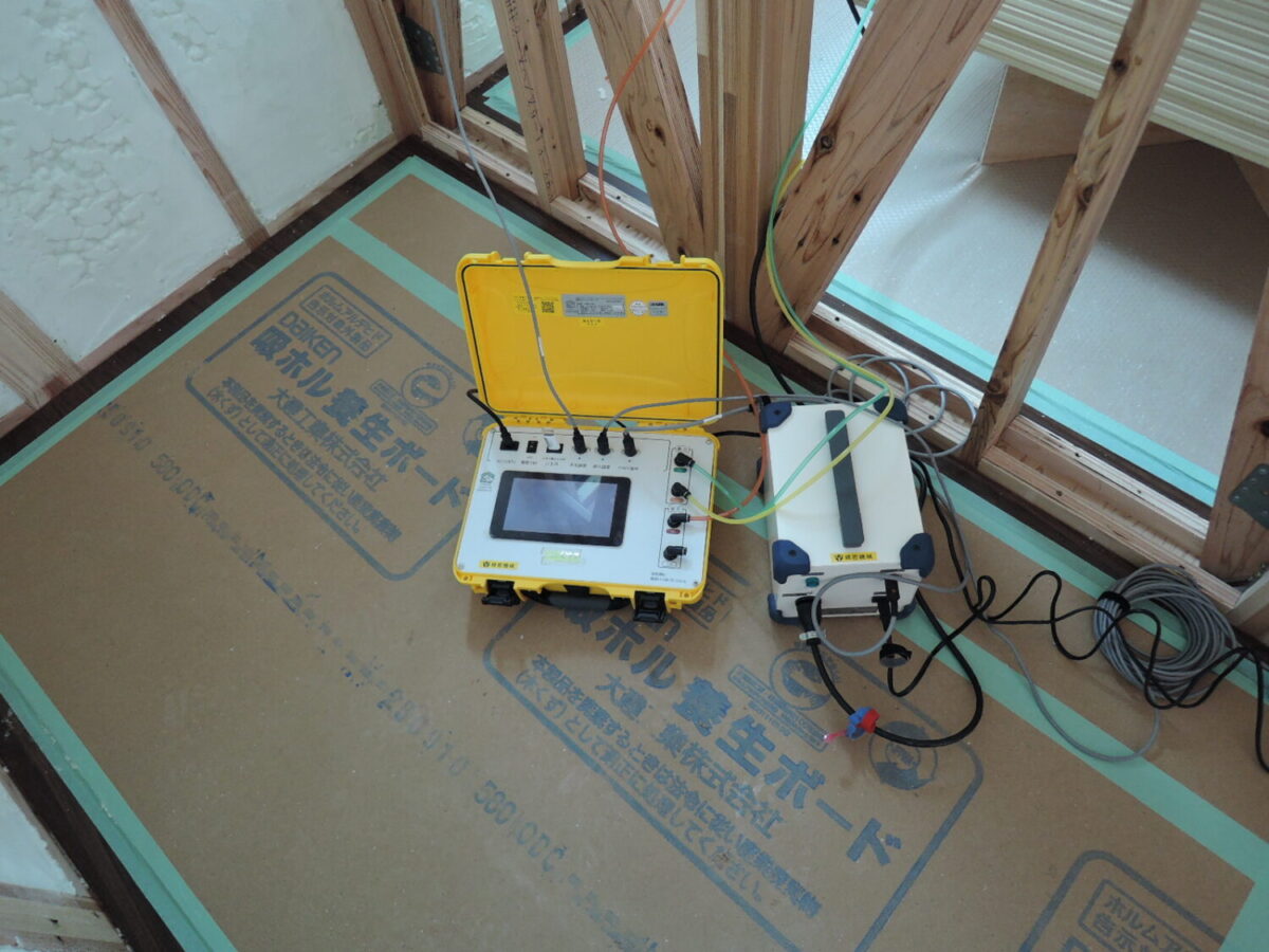 気密測定の際は窓等を完全に締めきる為、夏は中々過酷な環境になりますが、大分測定しやすい季節になってきました。