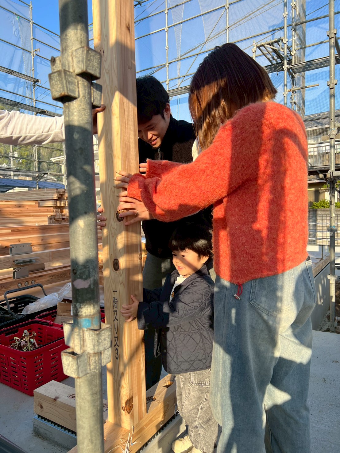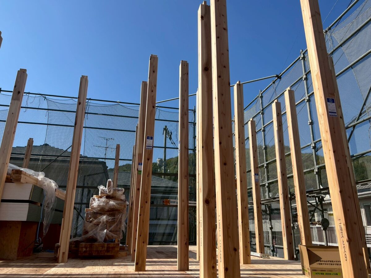 その後、棟梁を筆頭に大工さんにて作業を開始して柱をおこしていきます。