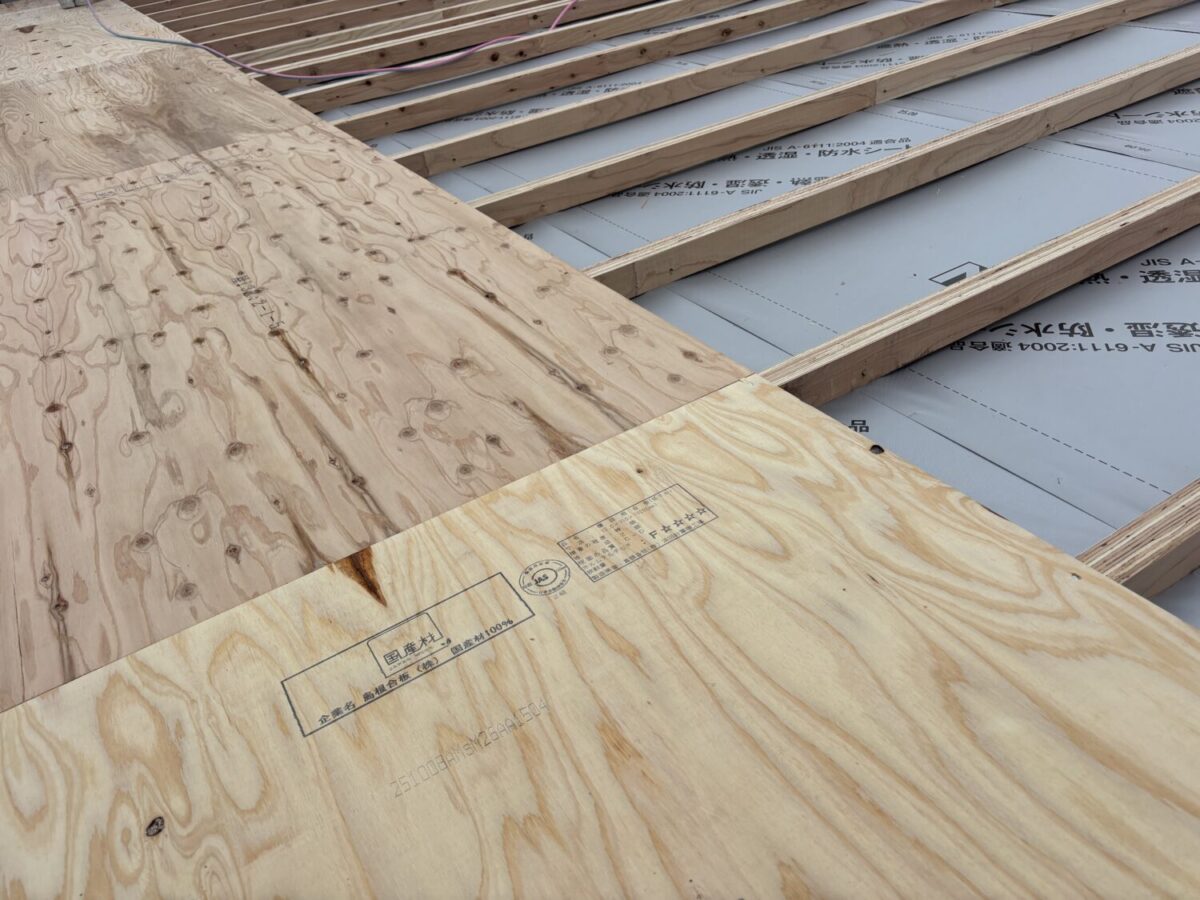 垂木材の上に屋根板を施工します。