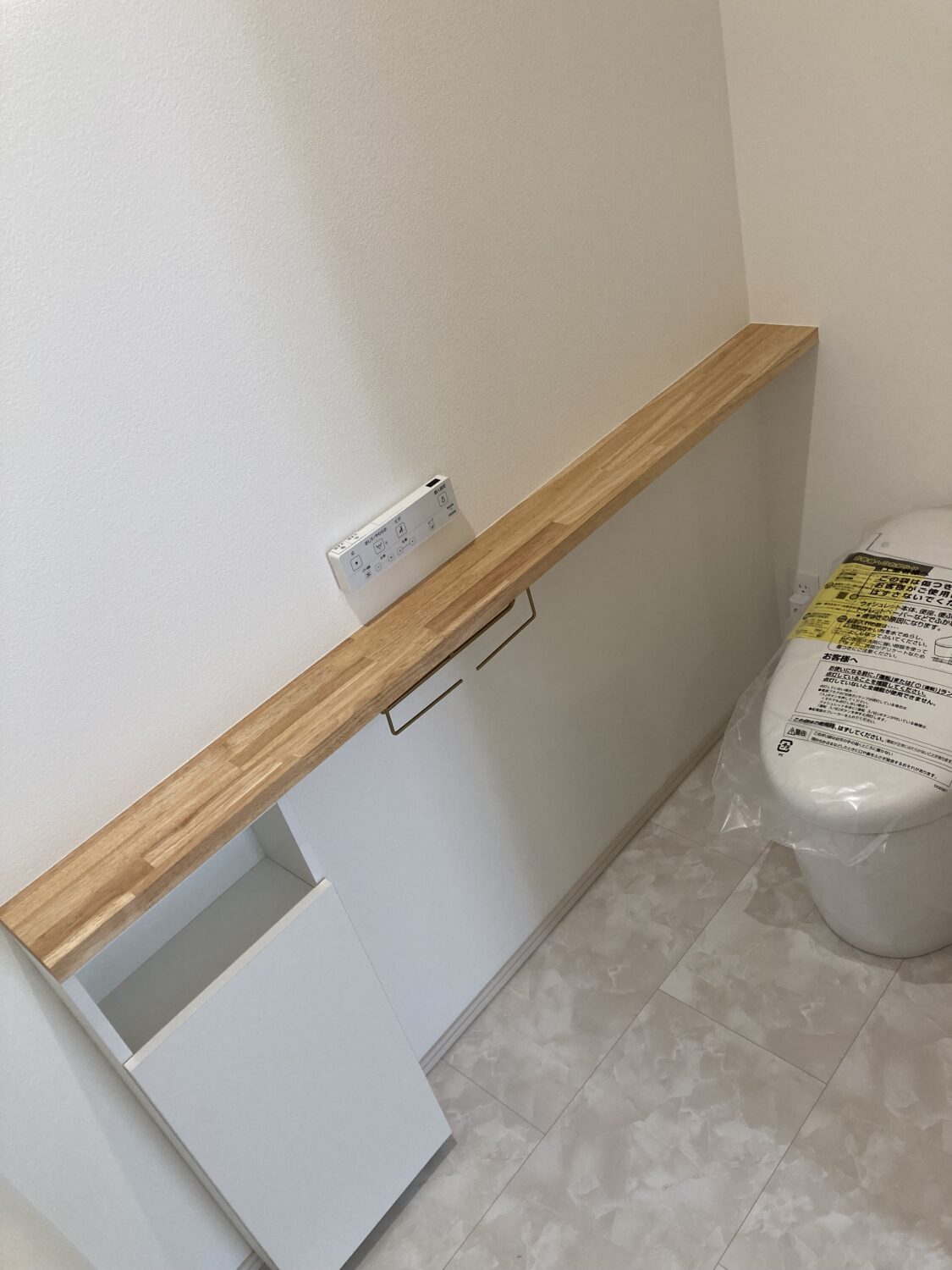 トイレにはカウンター付の収納を♪