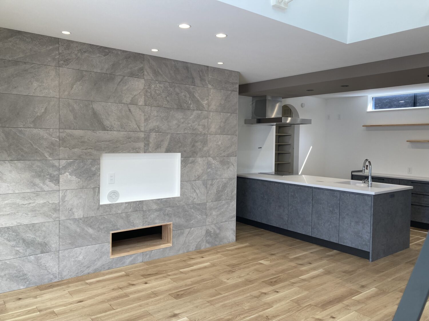 壁掛けテレビを設置される壁面にエコカラットをご採用いただきました♪