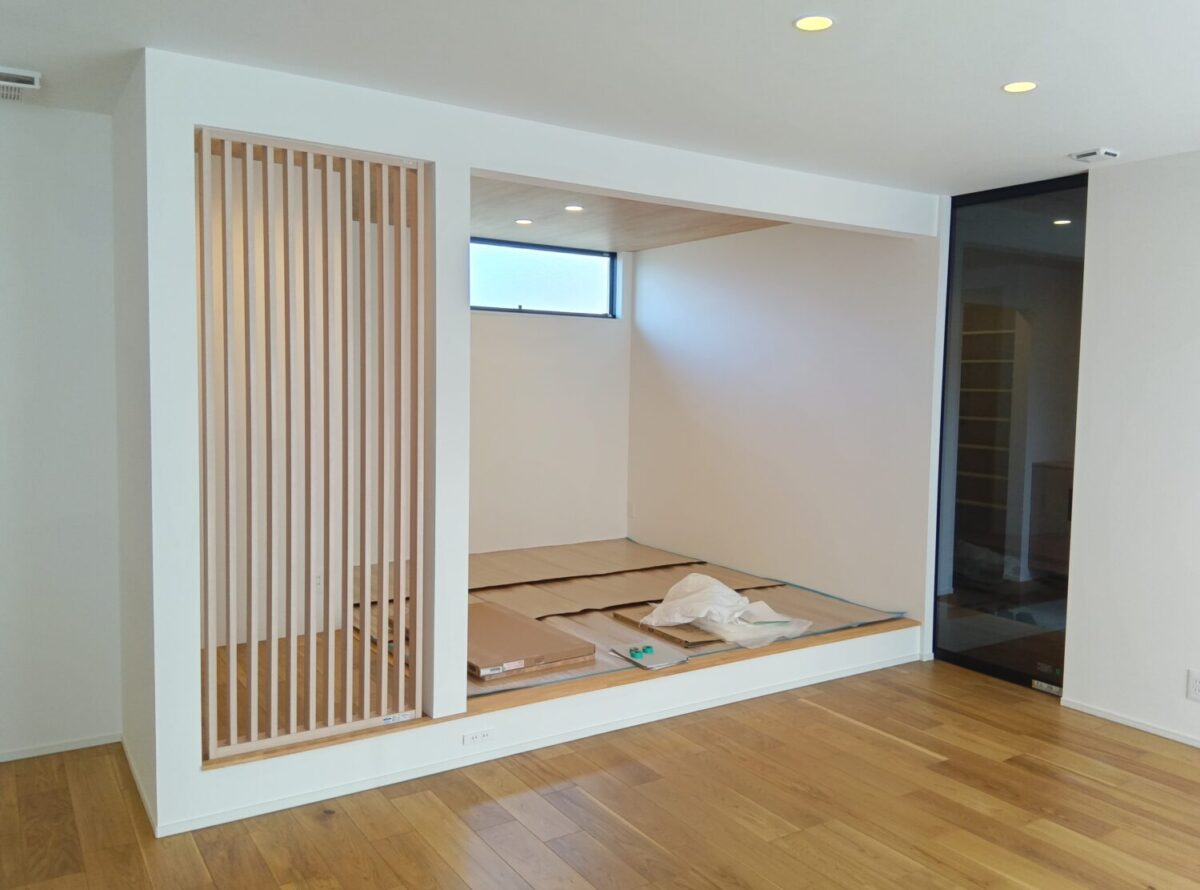 小上がりの和室は格子を設けて抜け感のある造りになっています。