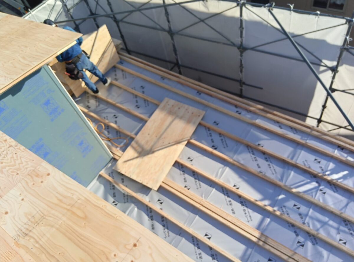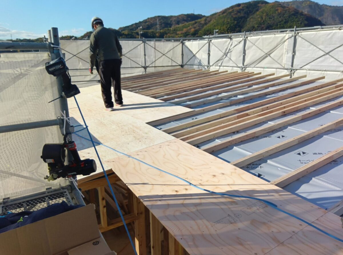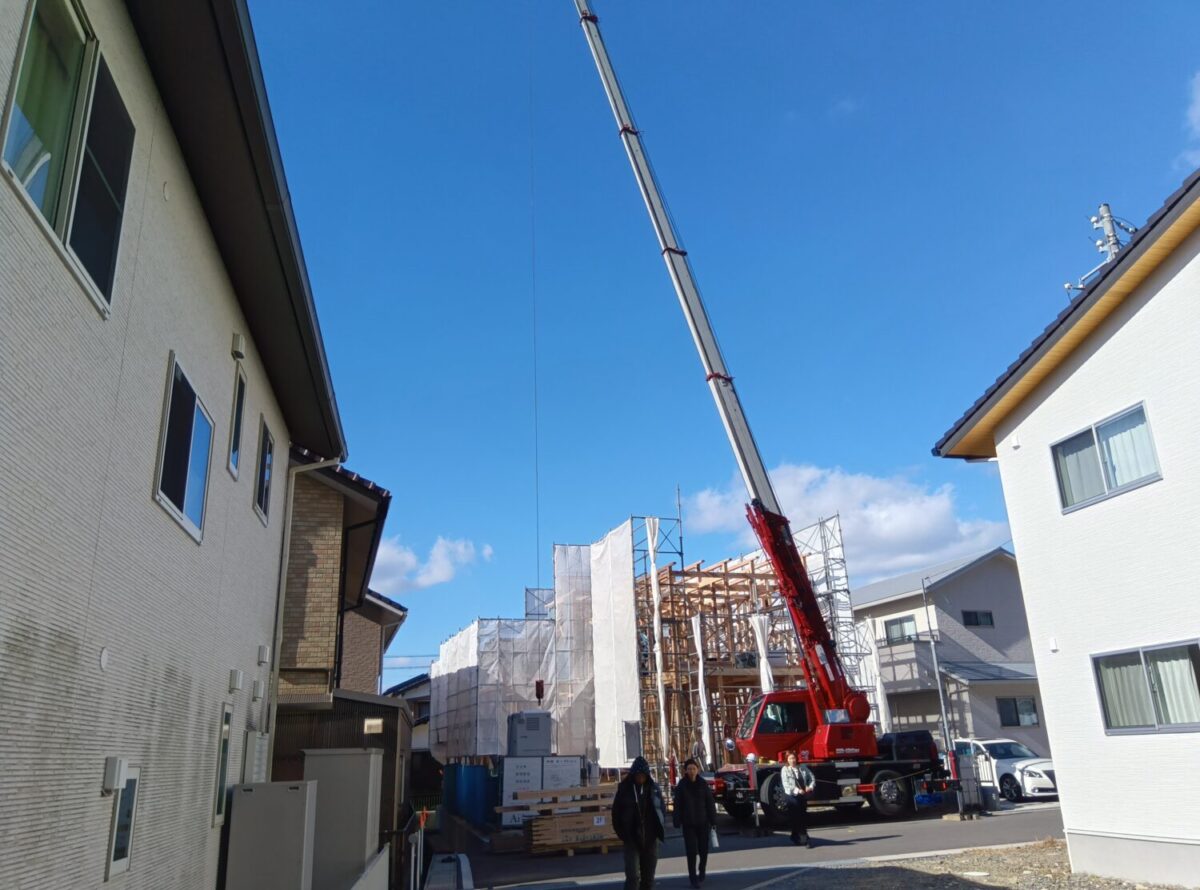 気温は10度ほどですが日差しがとても温かい上棟日和。