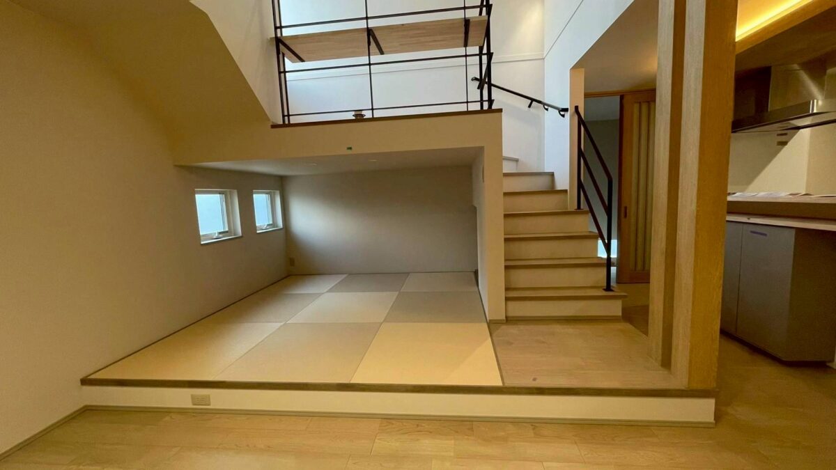 階段の1段目とタタミコーナーの床高さを合わせることで、有効活用できる空間になっています。