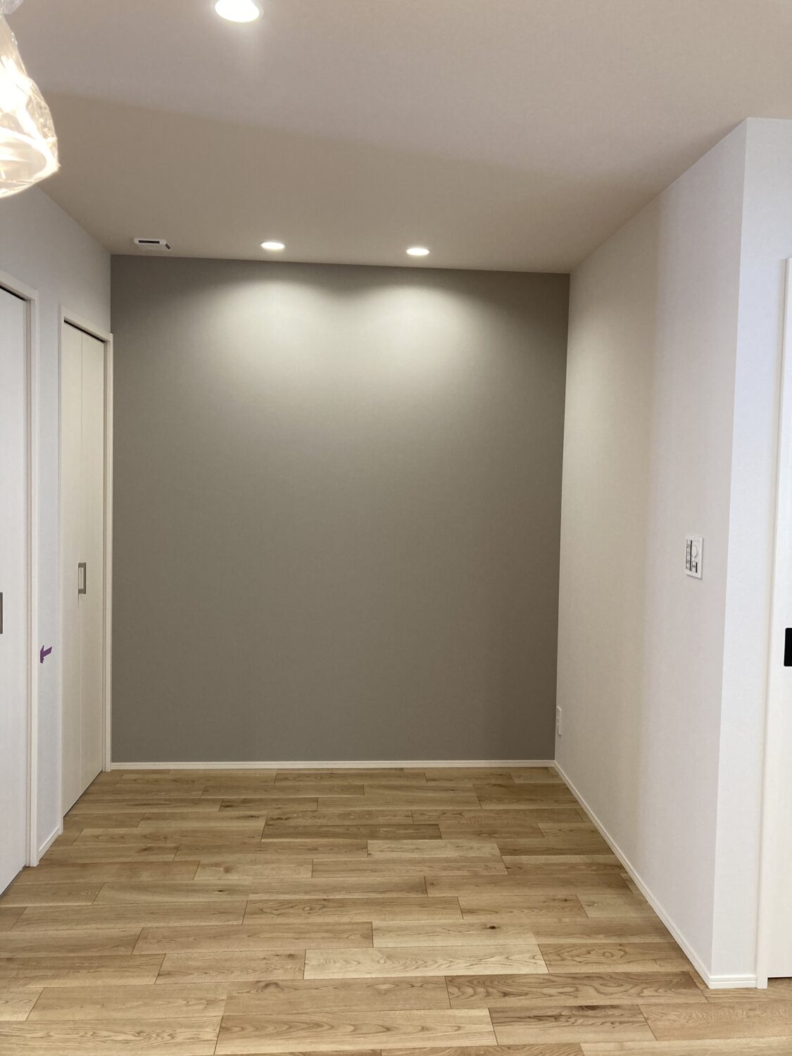 壁一面のアクセントクロスが空間を引き締めてくれています^^