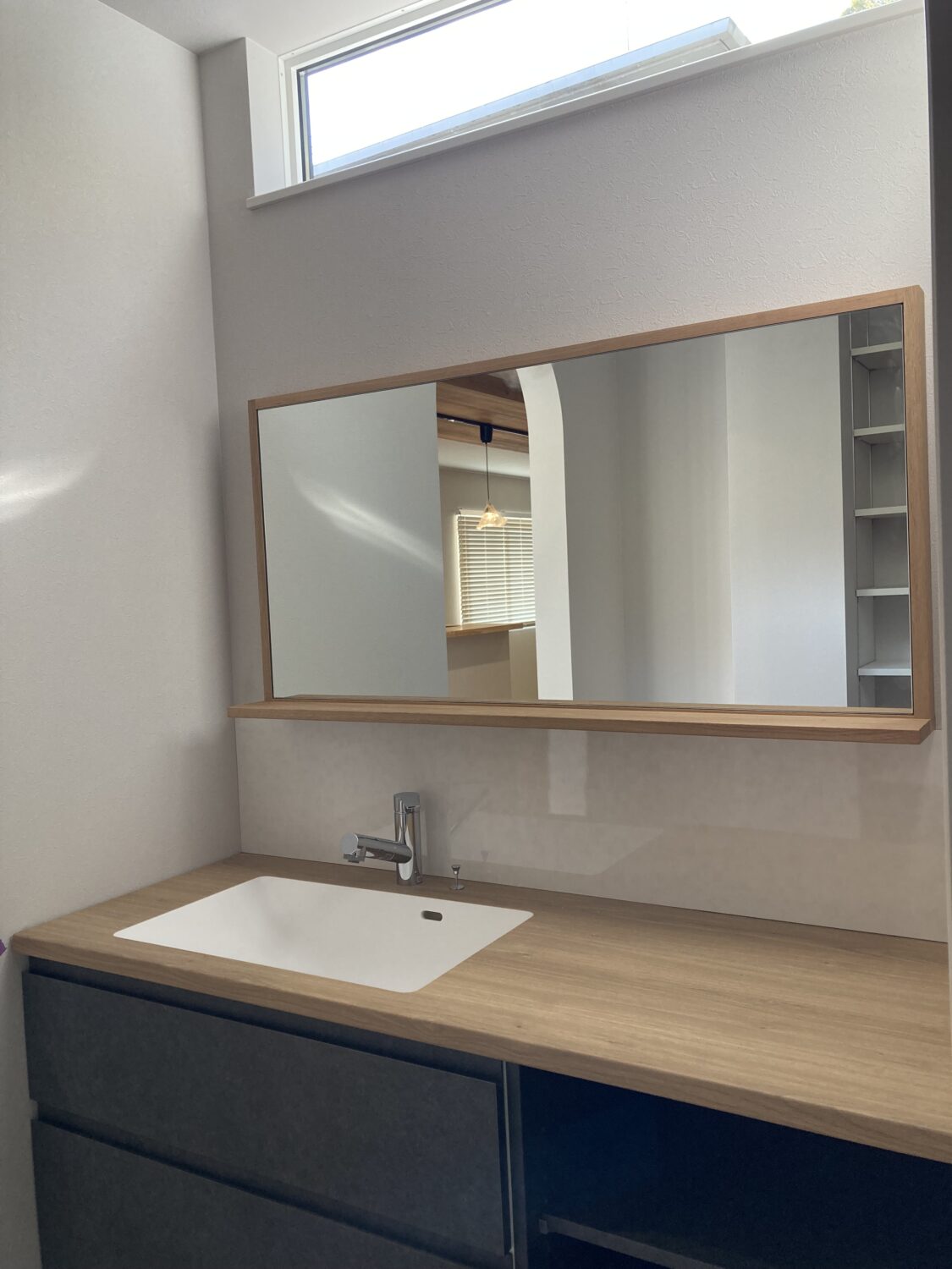 ミラー枠とカウンターの色を揃えられていて、とてもきれいな空間に仕上がっていました!