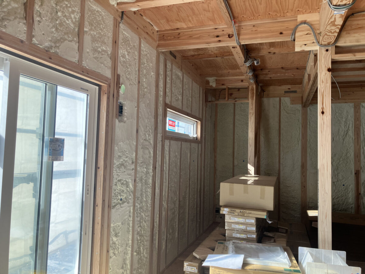 床暖熱仕様の現場ですが、窓は樹脂サッシを採用しております。