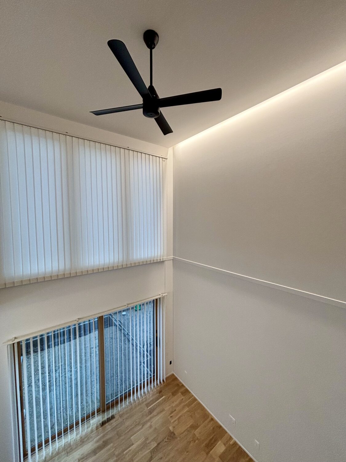 大きな吹抜けに大きな吹抜窓!そして間接照明!開放的でとても明るいリビングでした!