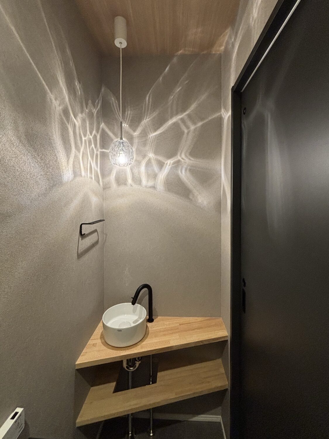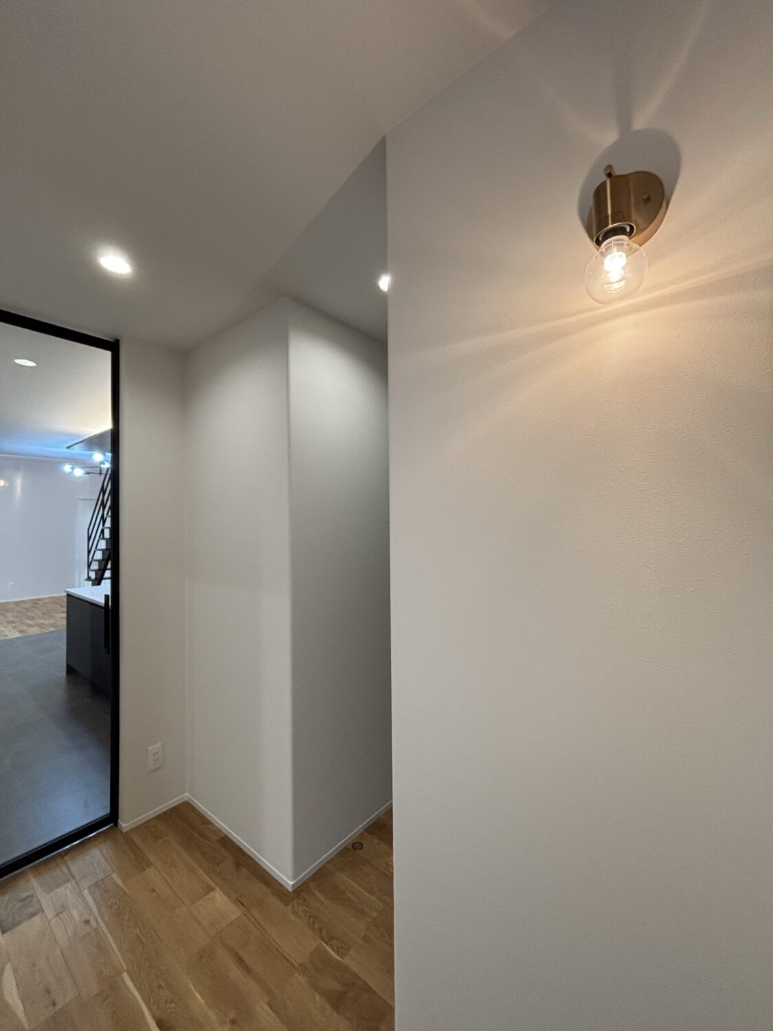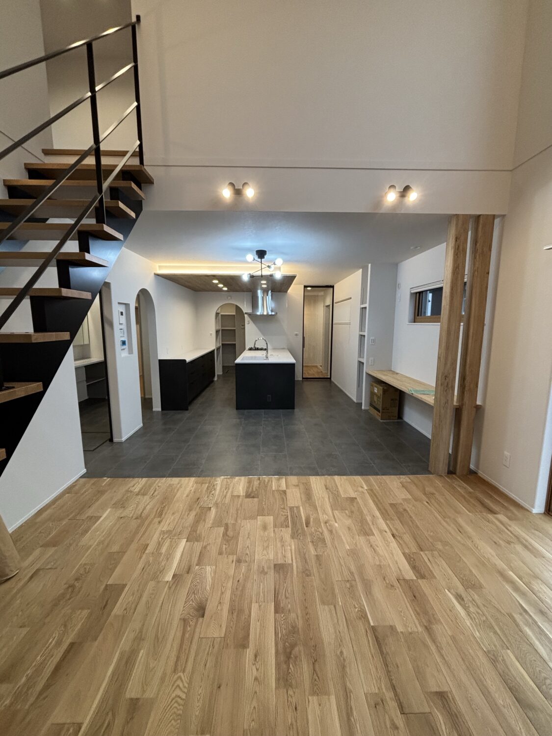 階段・照明・キッチン等小さな面積に黒採用していただき、全体が引き締まりまとまりのある空間になっています。
