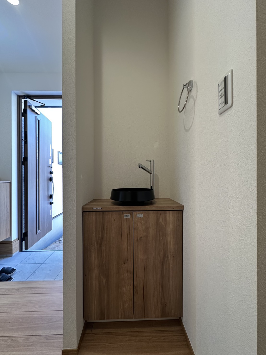 玄関横には手洗い器があり、帰ってすぐ洗えて便利です!