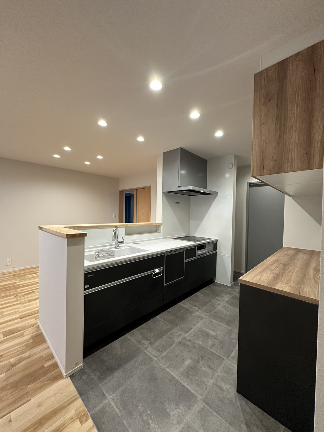 ガレージから濡れずにお家の中に入れ、そのままキッチンに行ける間取りになっており家事動線が良いです♪