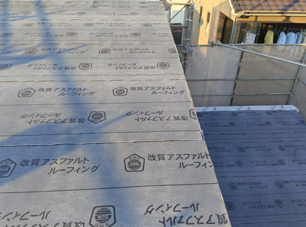 作業は順調に進み屋根ルーフィングも張り終え