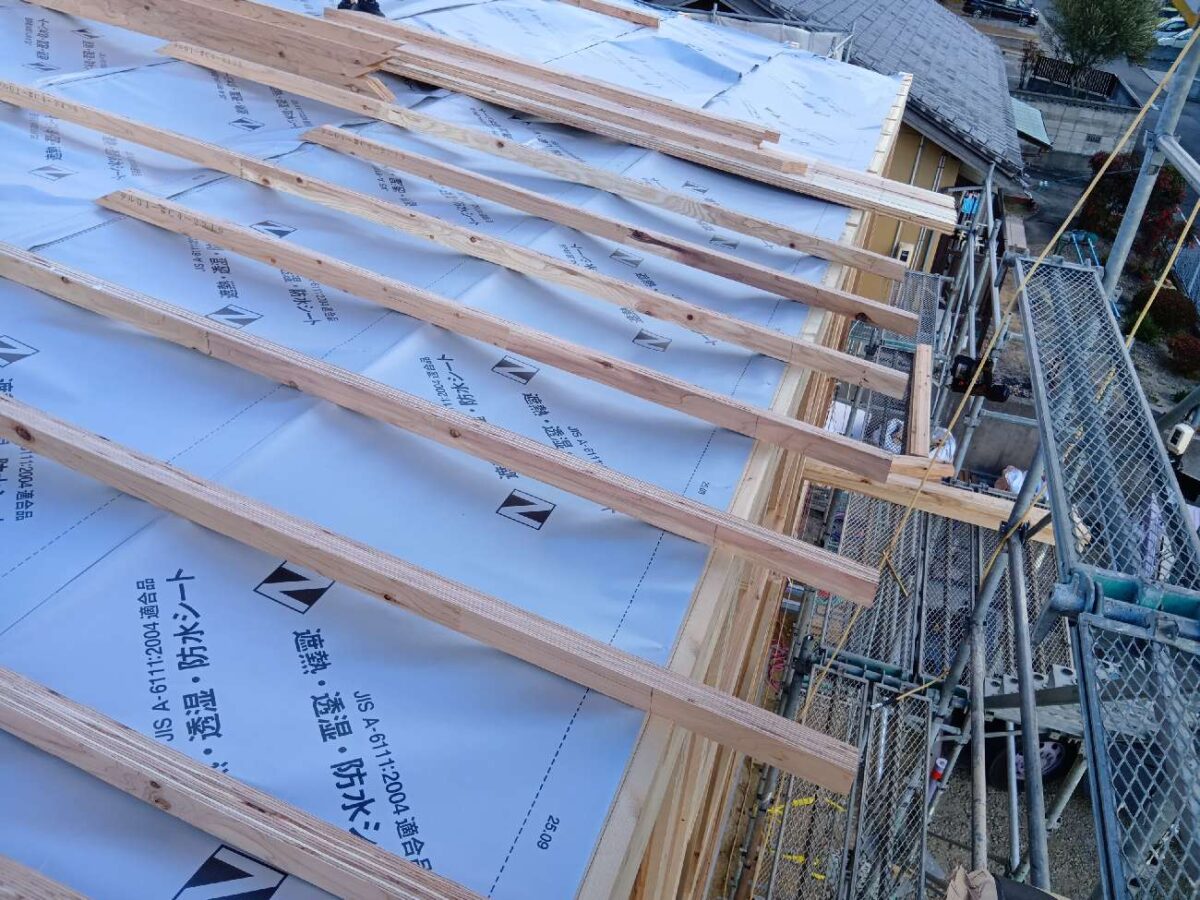 屋根裏に遮熱シートも敷きます。