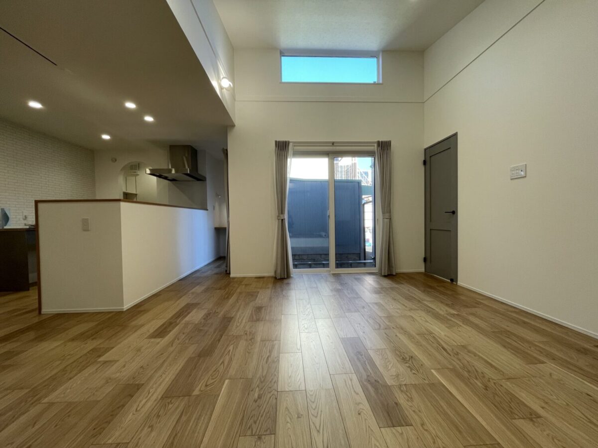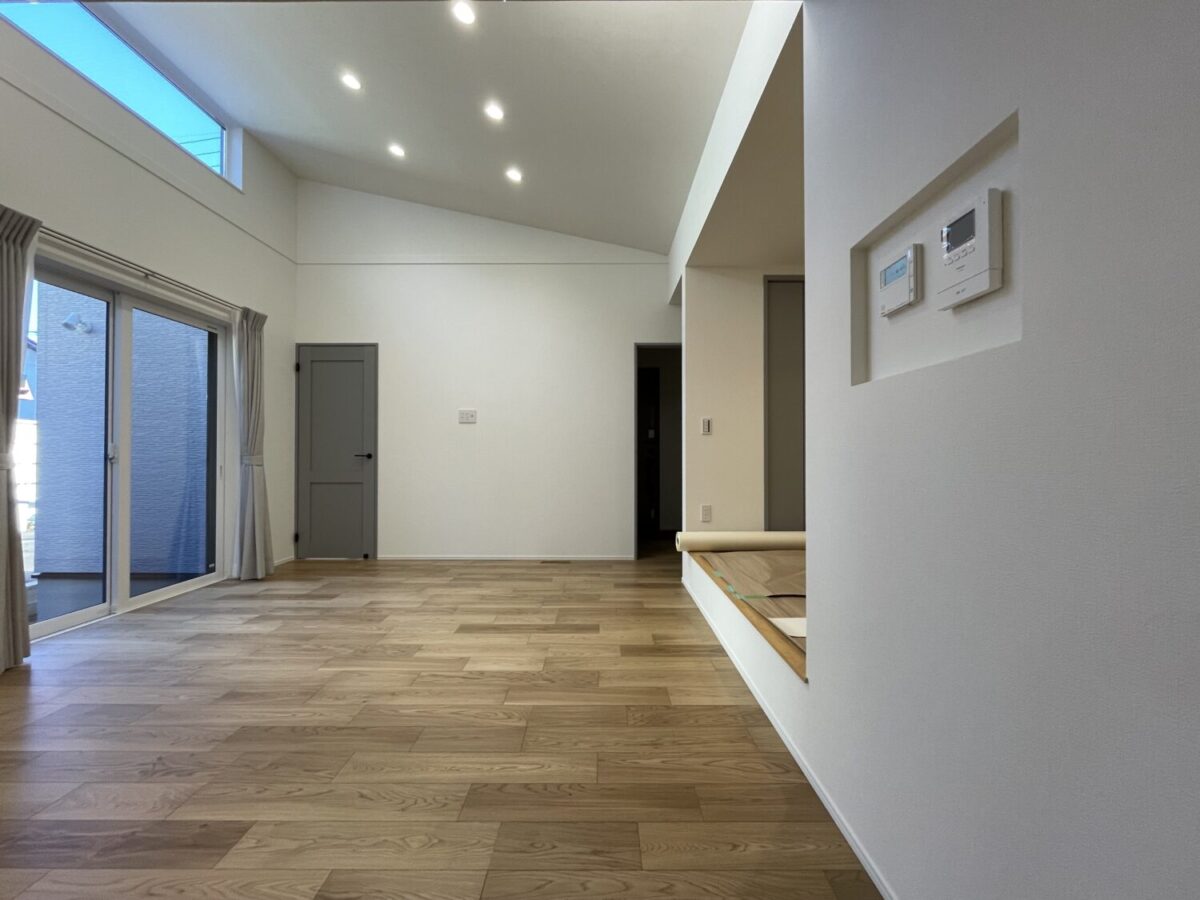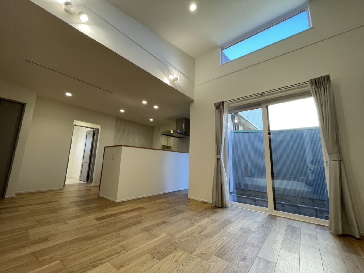 平屋のお住まいですが、リビングは天井が高く開放的な空間となっています。