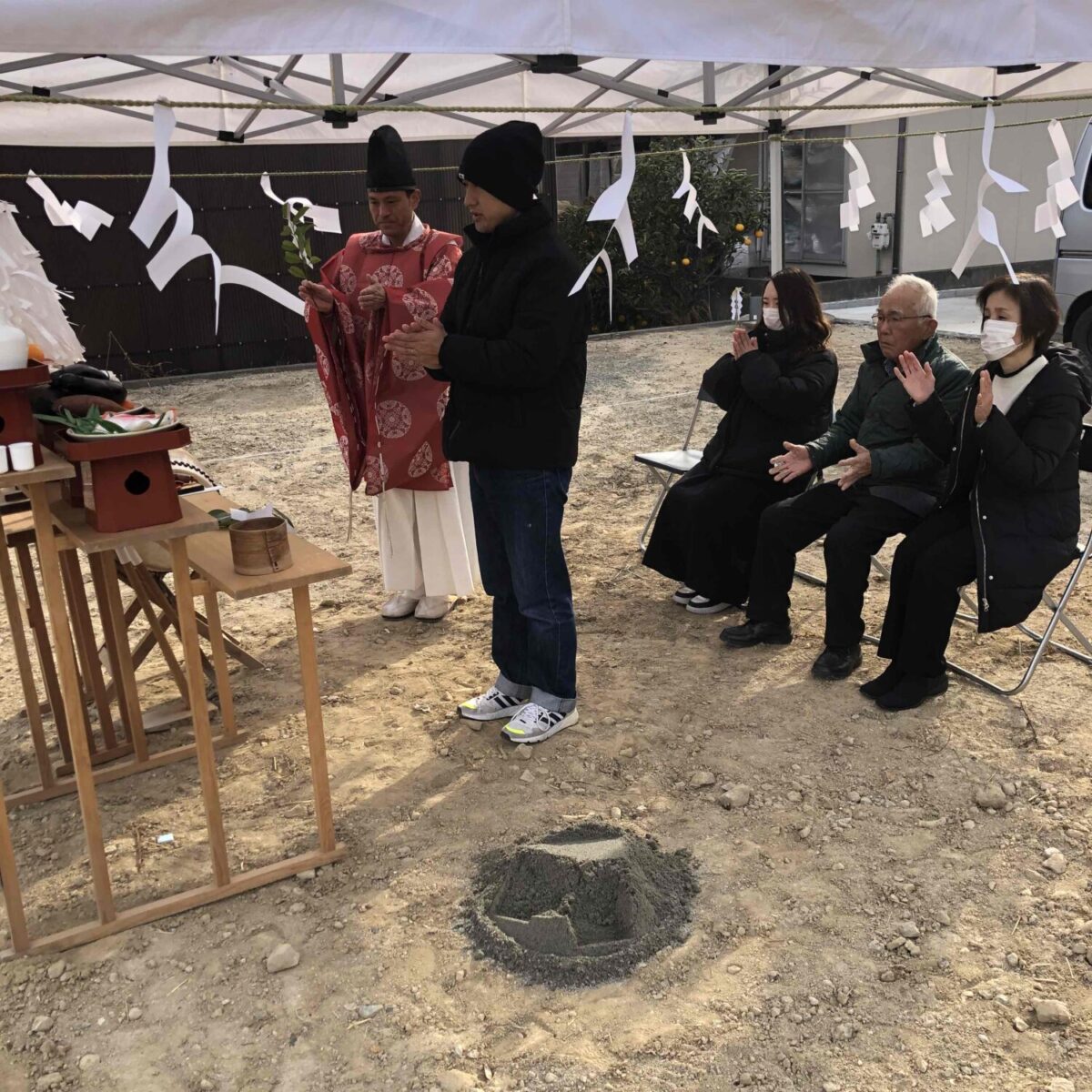 先日、福山市大門町にてF様邸の地鎮祭を行わせていいただきました。