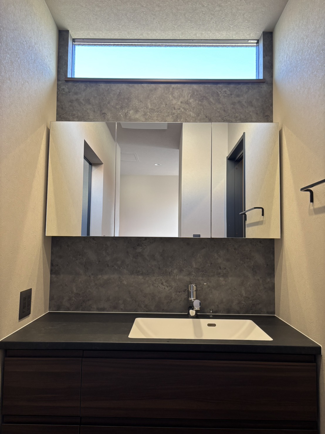 1階とは違い、薄めのグレー木目で、和モダンな雰囲気でお作り頂きました🌿
