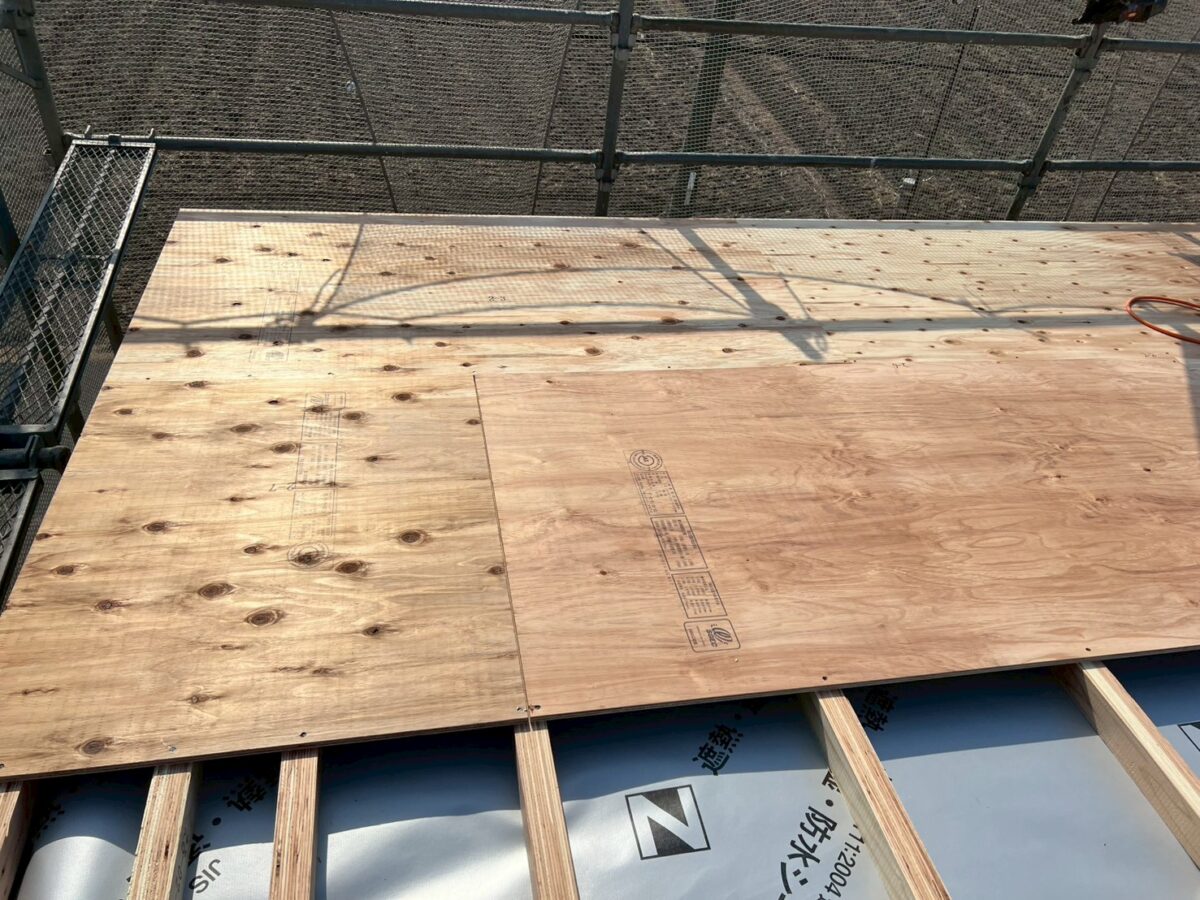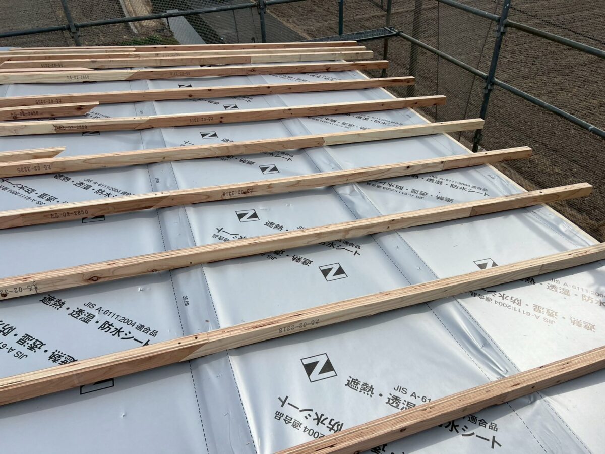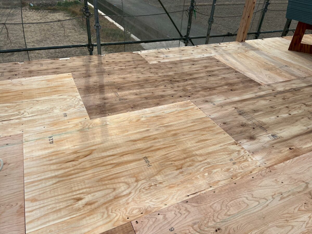 上棟当日にルーフィングを施工し雨仕舞いをします。