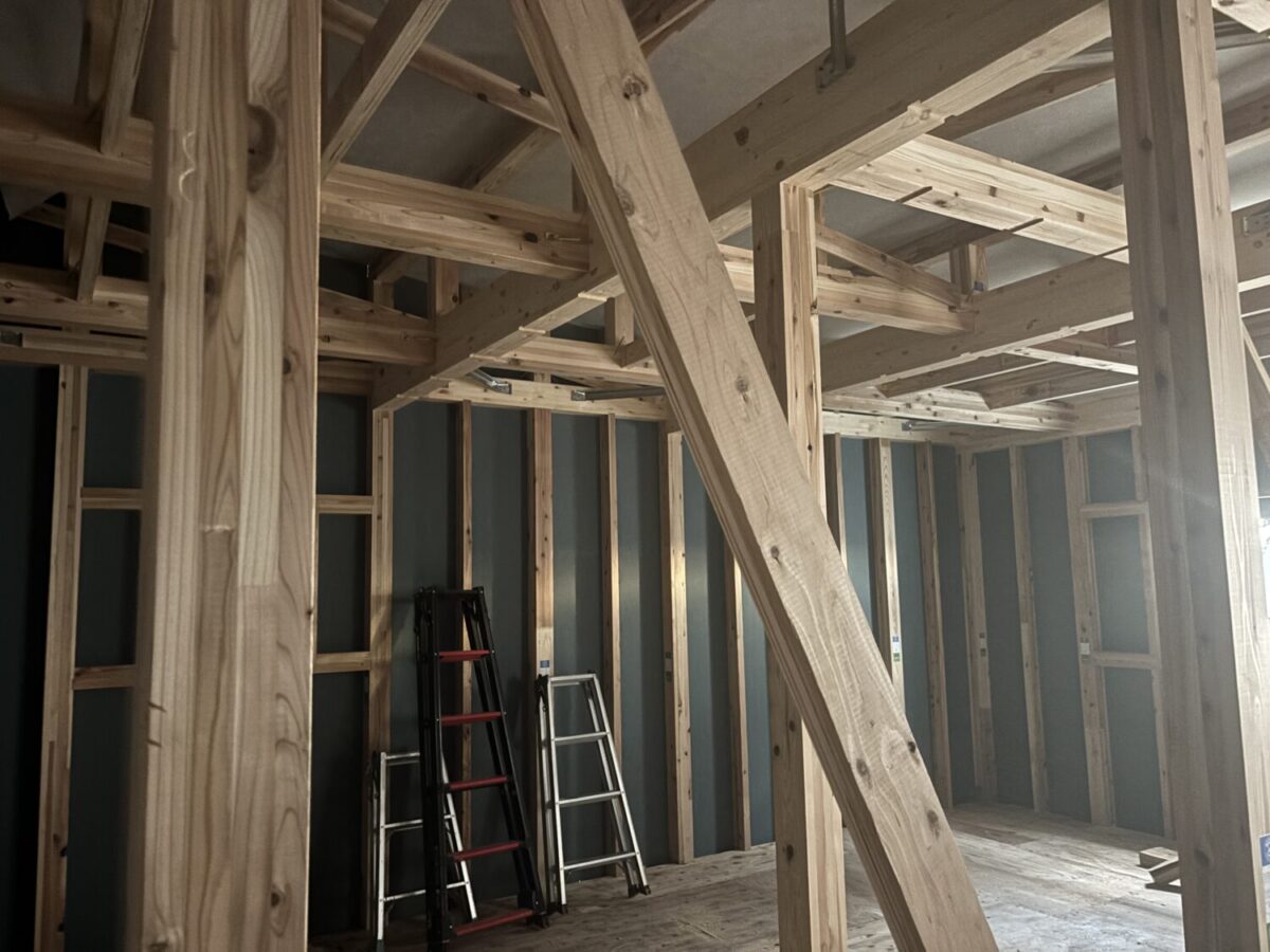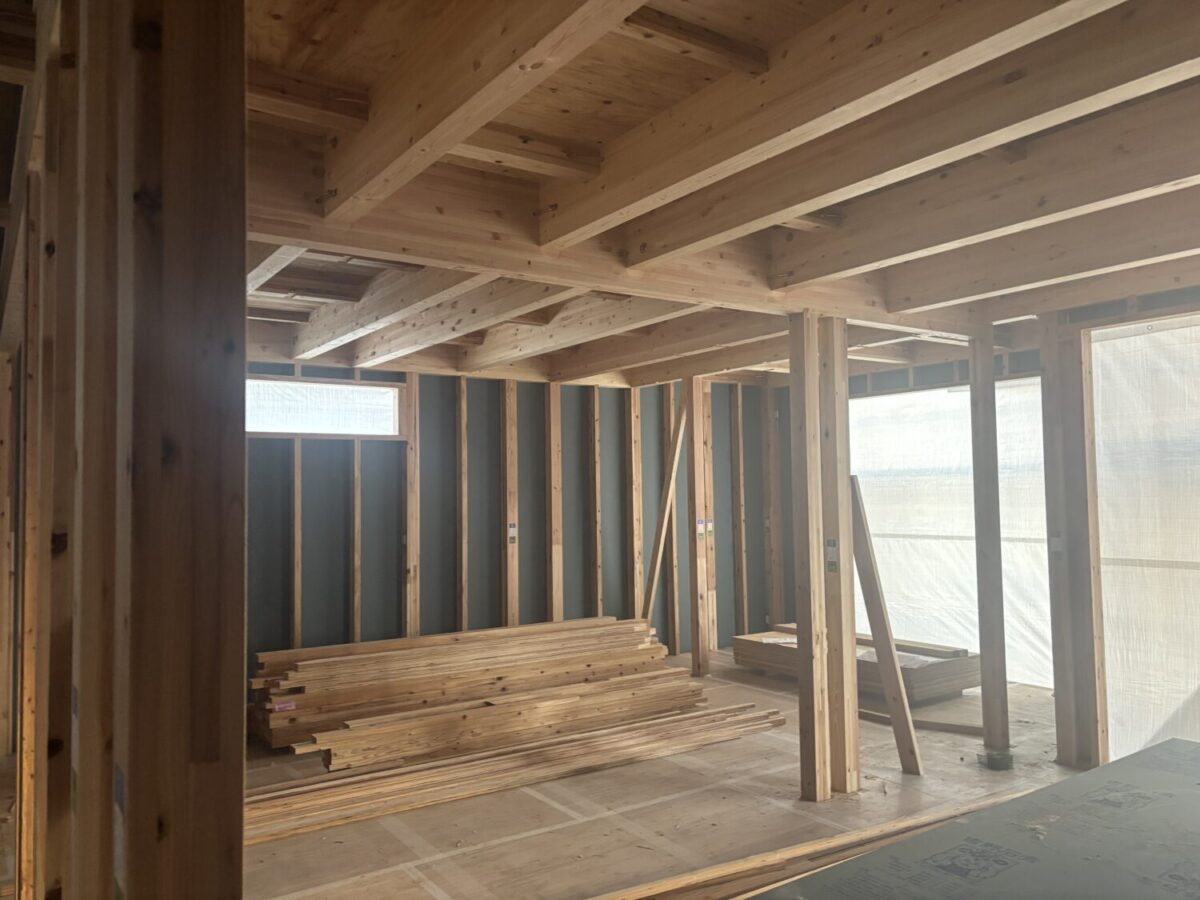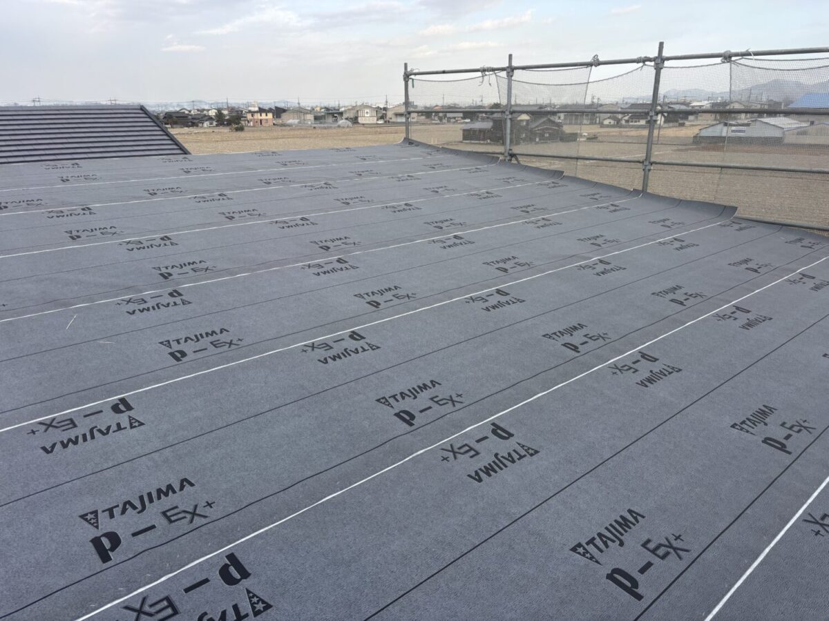 上棟当日にルーフィングを施工し雨仕舞いをします。