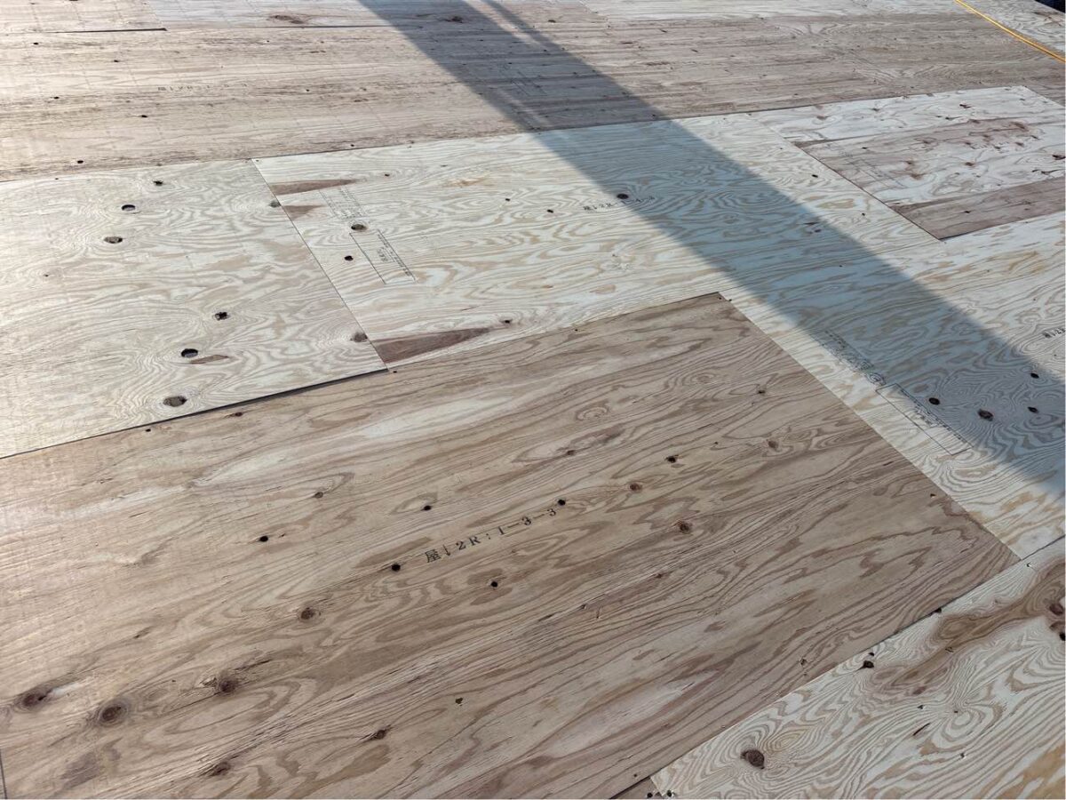 上棟当日にルーフィングを施工し雨仕舞いをします。