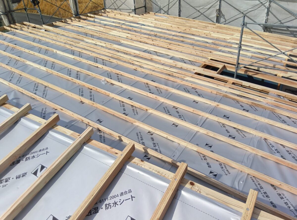 これから屋根屋さんが防水紙を屋根に敷いていきます。
