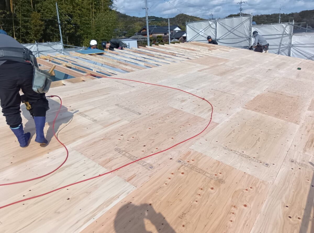 野地板張り状況。