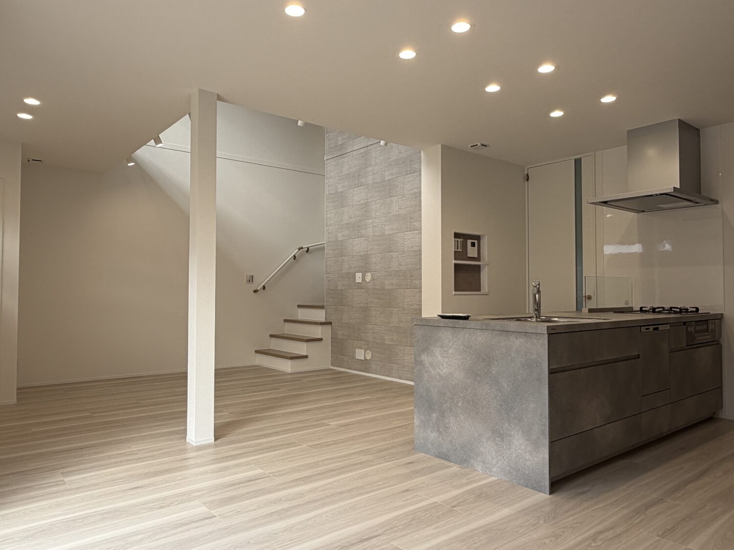キッチンをグレートーンでまとめることで、
