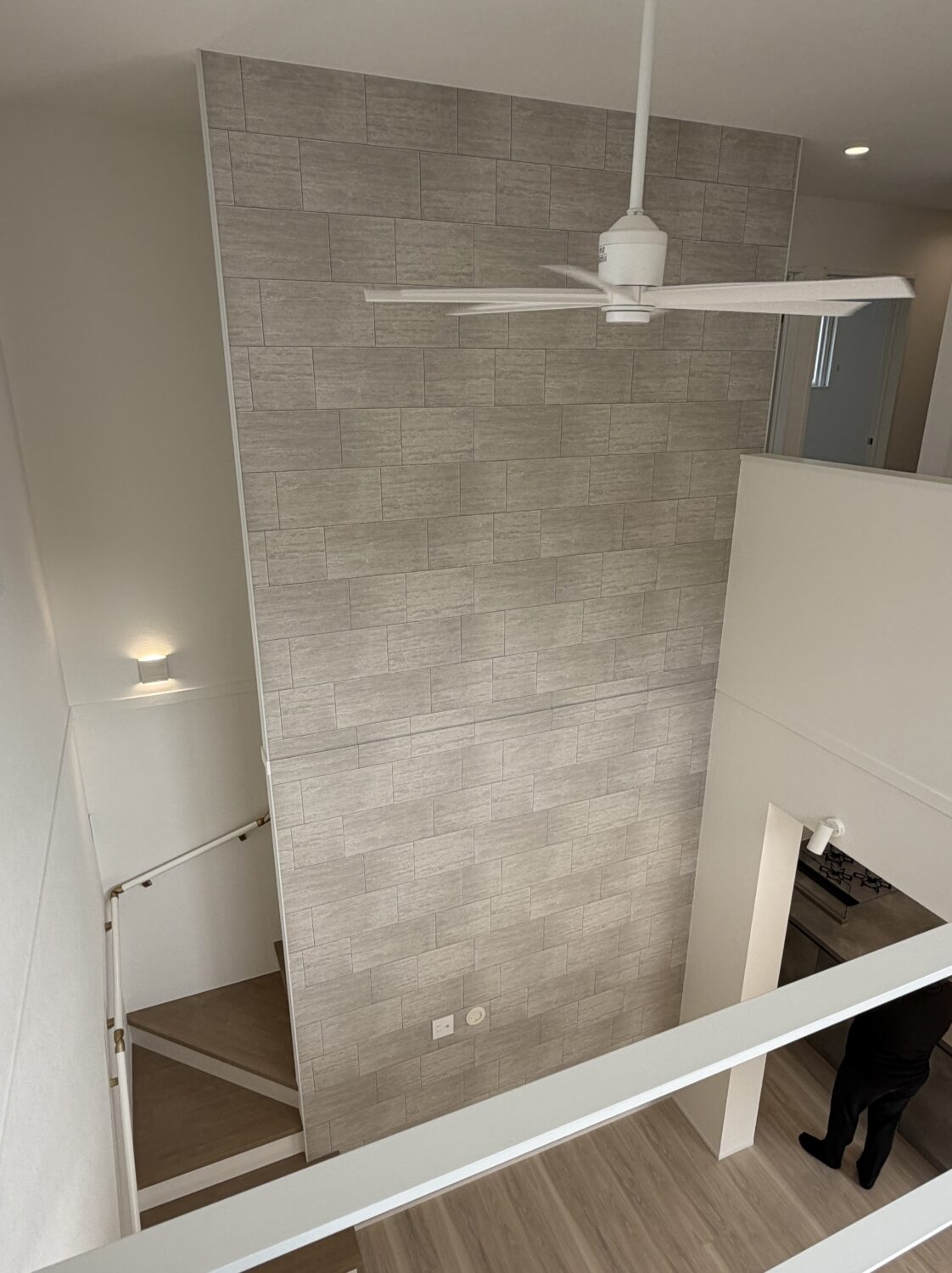 吹抜から見下ろすと、アクセントウォールのスケール感がより際立ちます!