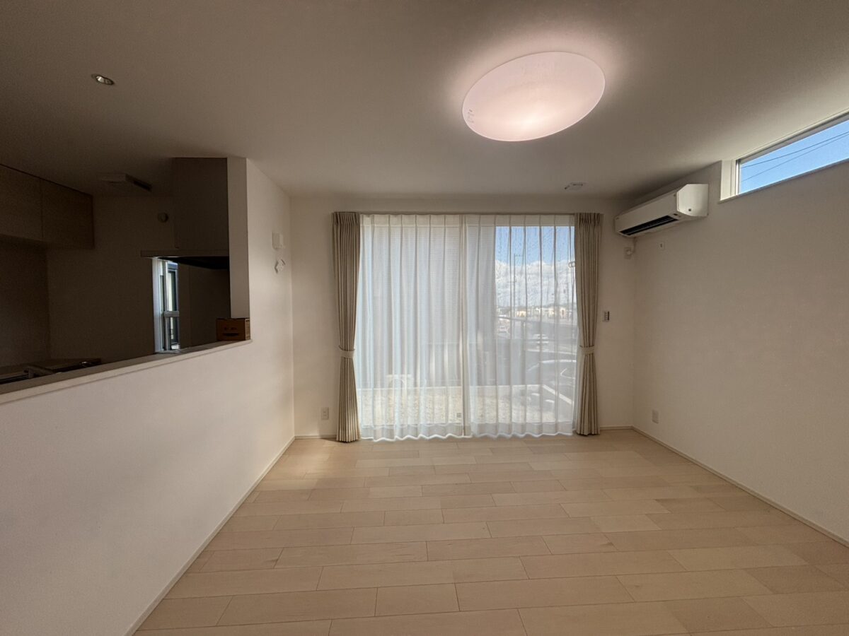 LDKには256㎝の大きな窓と白い床を合わせて頂き、明るい空間になっています🌿