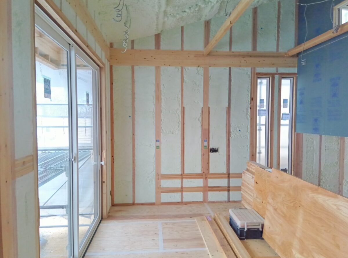 断熱材の吹付工事完了しています