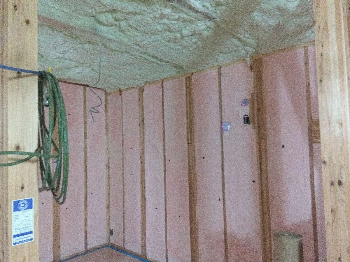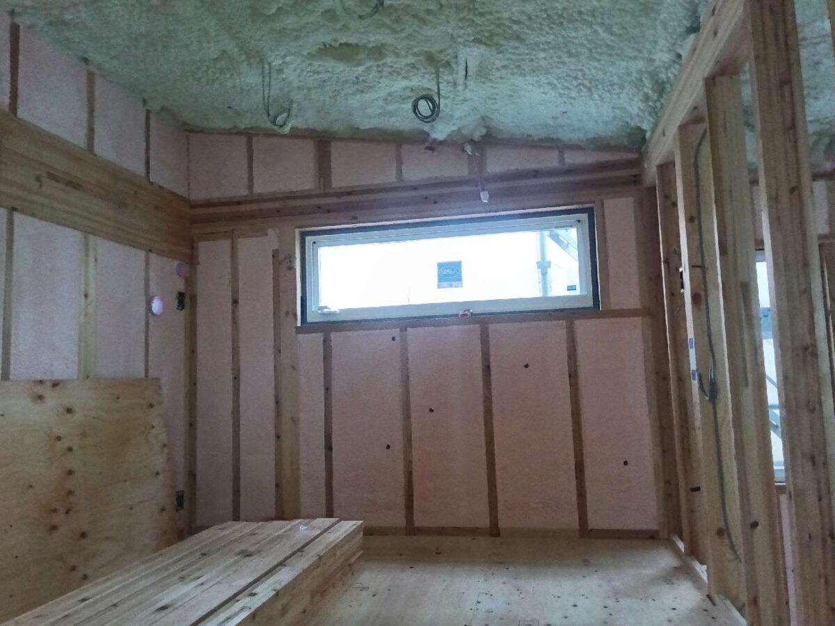 測定は良い結果となりましたので、石膏ボード張り進めていきます。