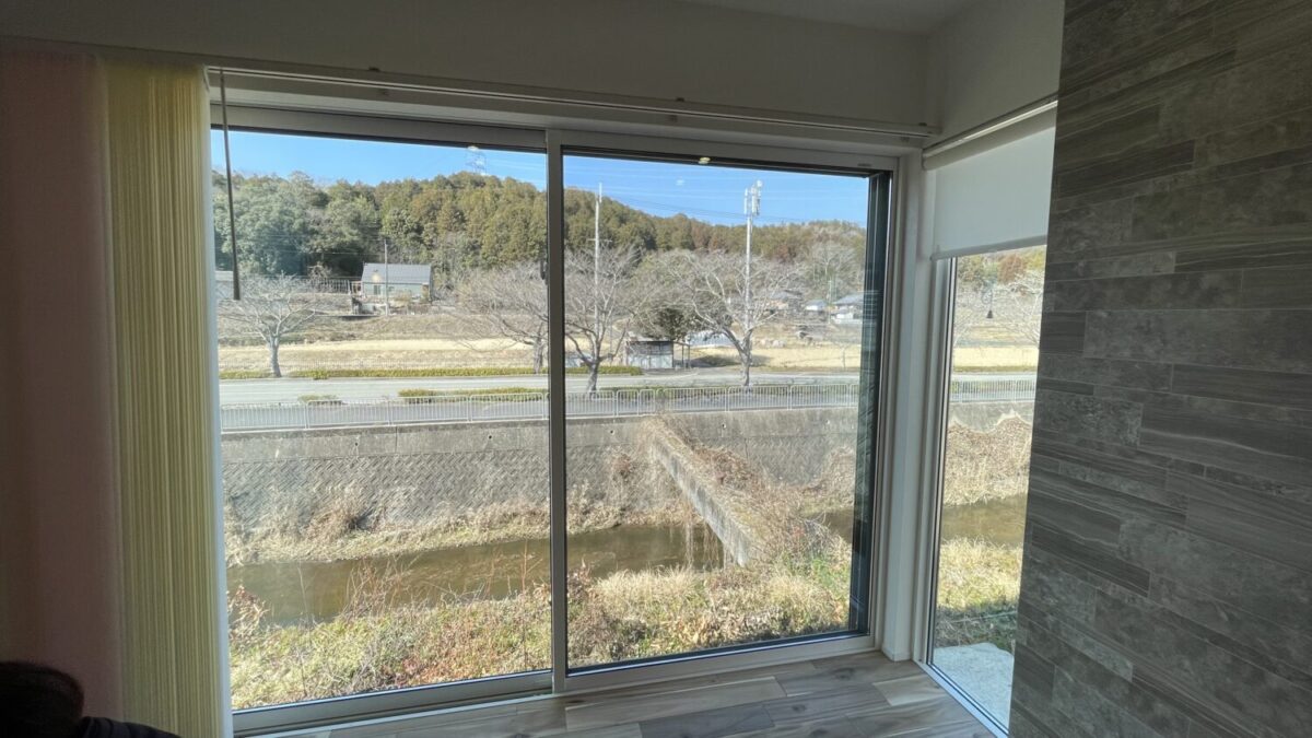 リビングにはL字に窓を設けて2方向から桜を楽しめるようになっています。