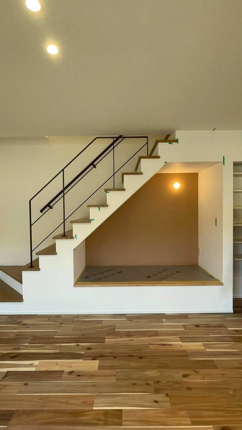 階段下のヌックは井草の畳敷なので寝転んでゆっくりできるようなスペースになっています。