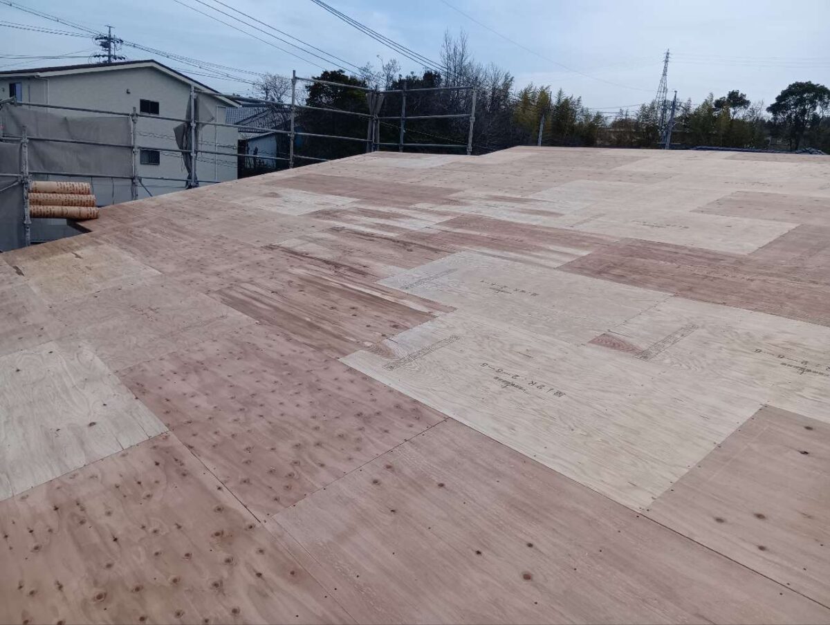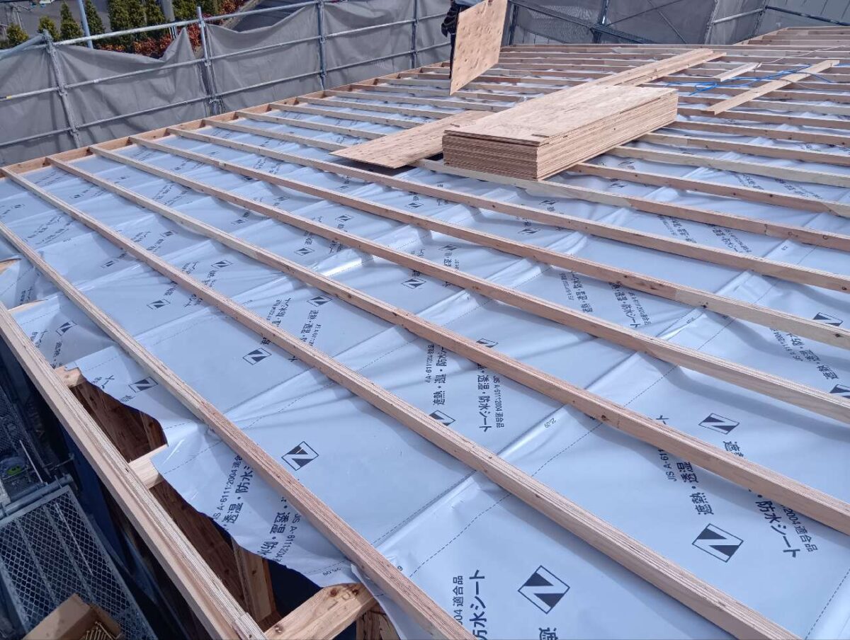 屋根垂木施工が終わりましたら、野地板を施工して完成です。