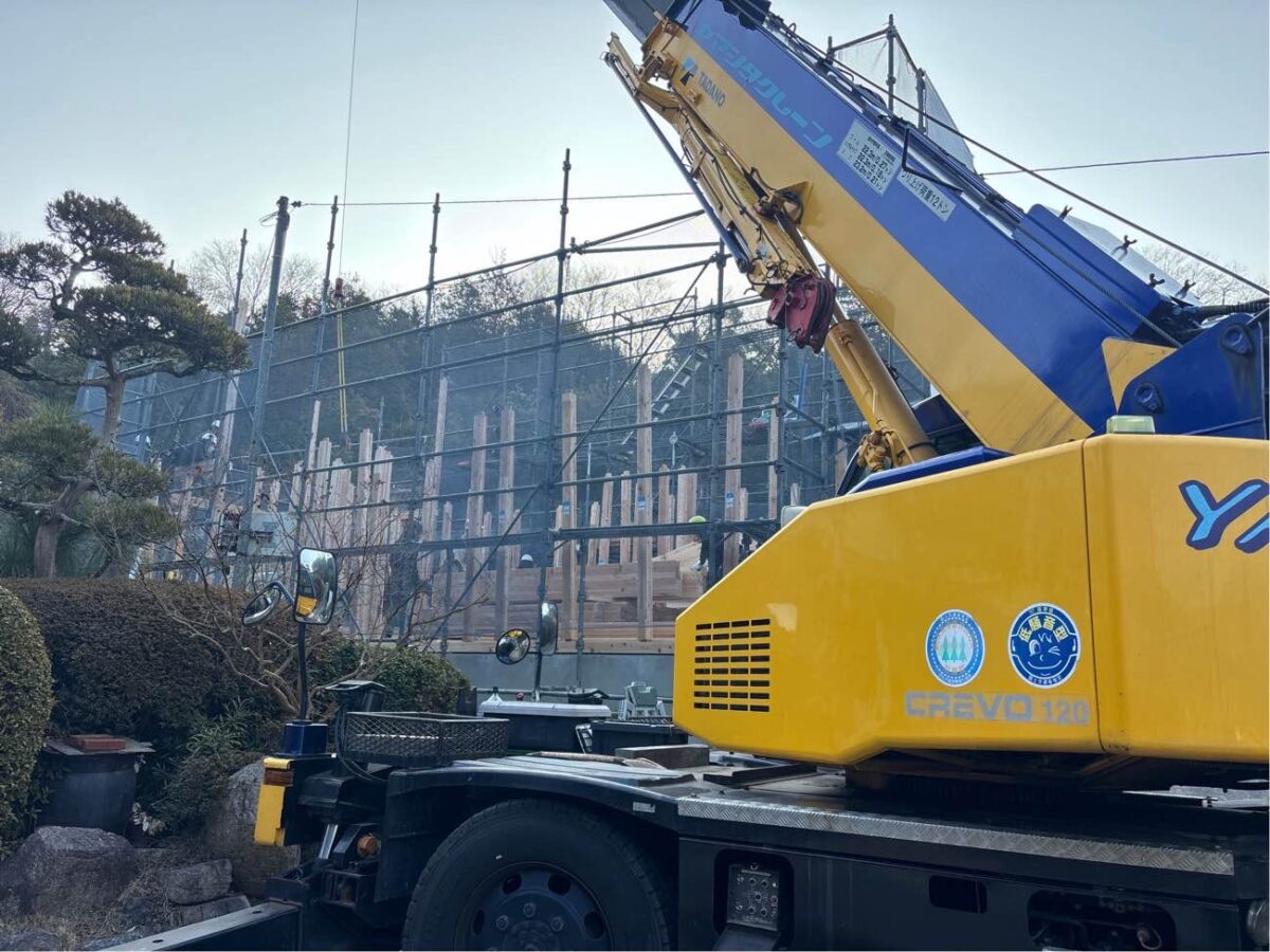 2階の厚床施工後、2階の材料搬入します。