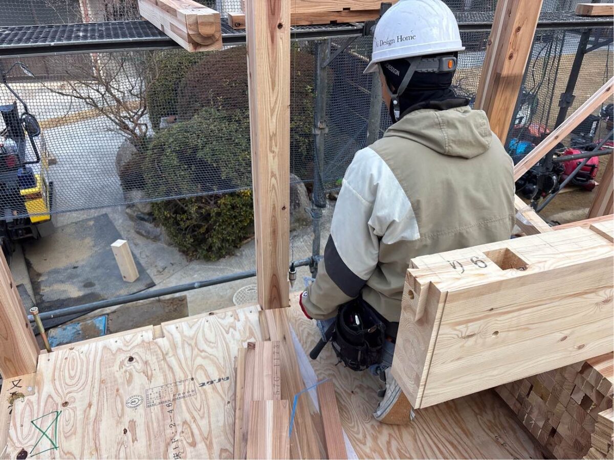 2階の梁組をします。