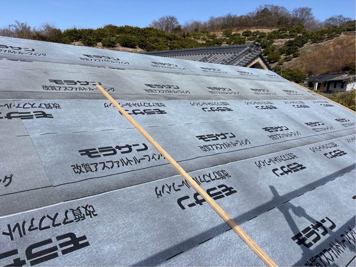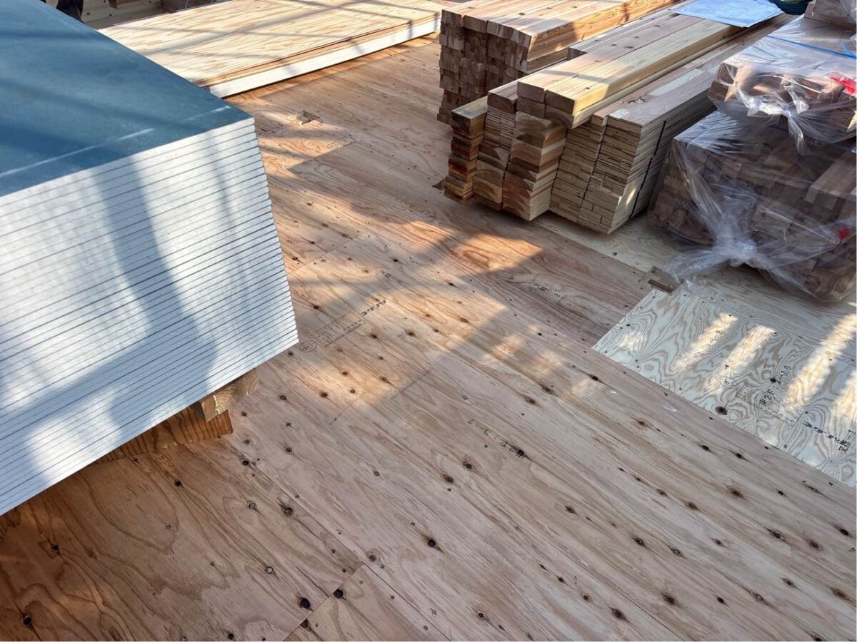 上棟当日にルーフィングを施工し雨仕舞いをします。
