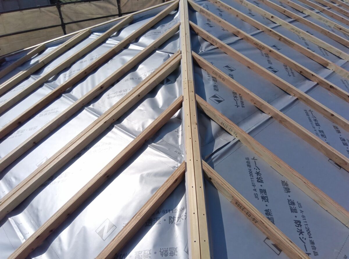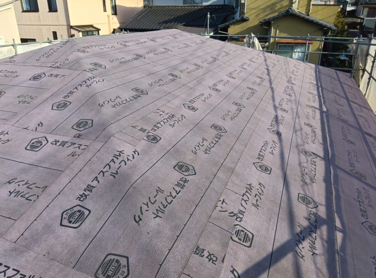 作業は順調に進み屋根ルーフィングも張り終え