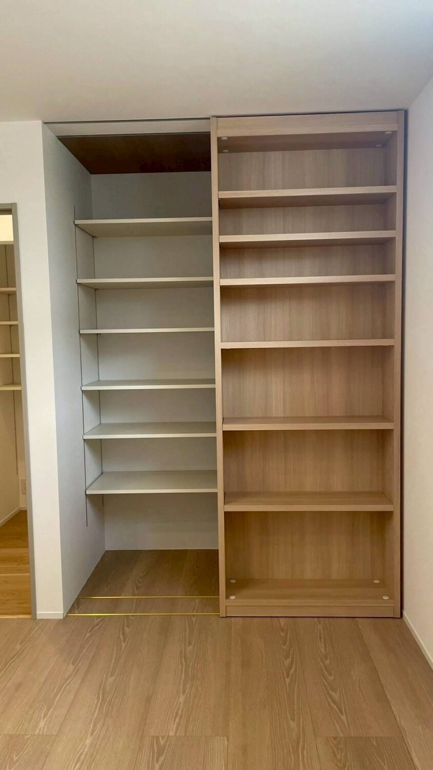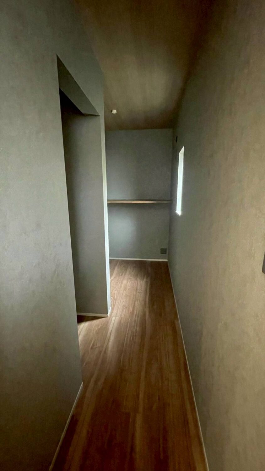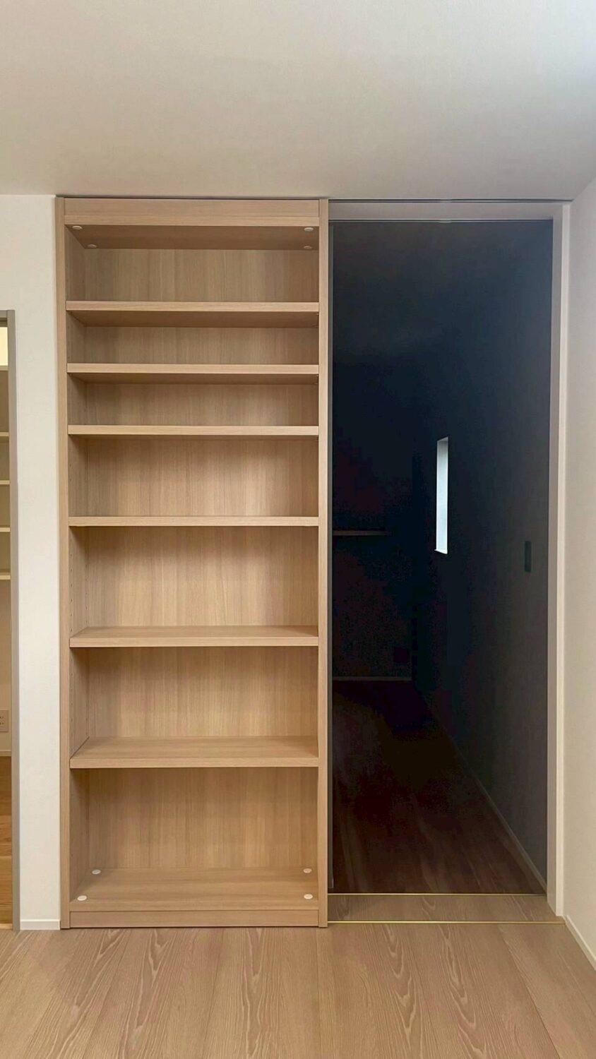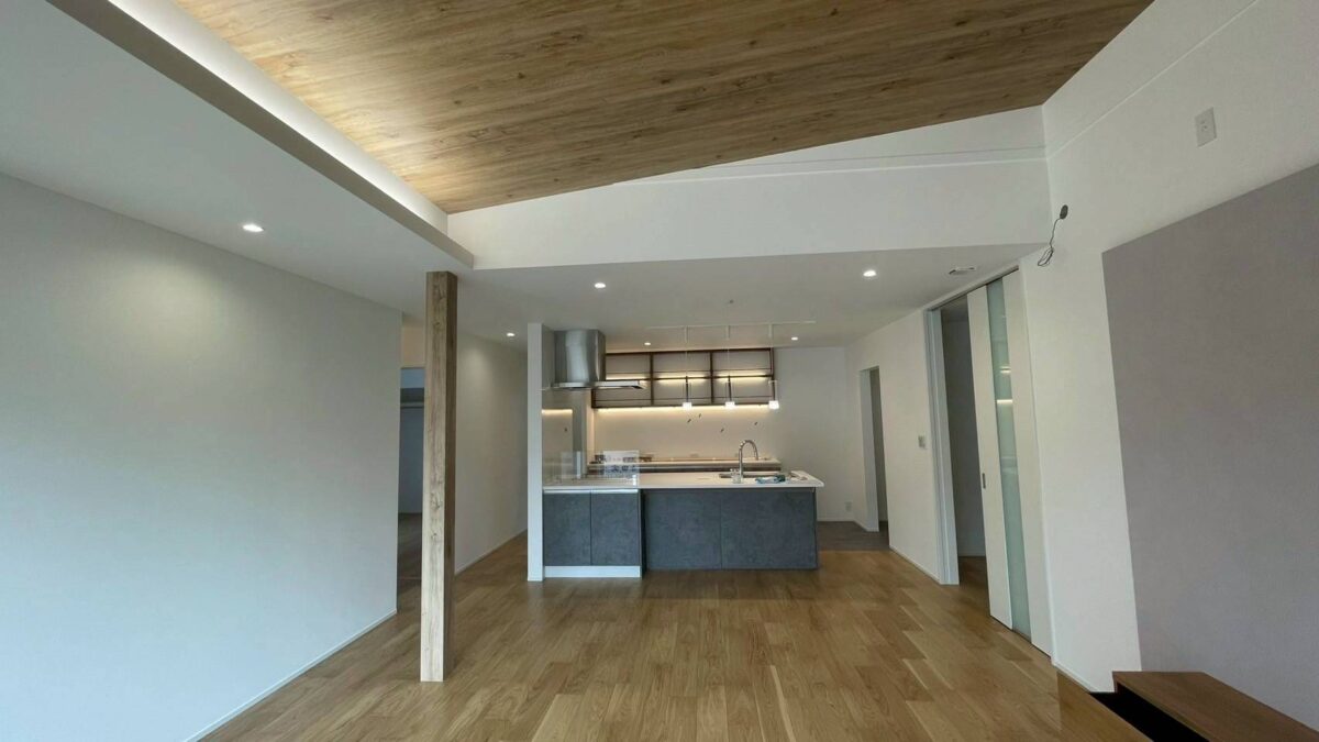 天井いっぱいに広がる木目が空間に温かみを添え、ナチュラルで落ち着きのある空間です。床と天井の木目のトーンを揃えることで、全体的にやわらかな一体感が生まれます。
